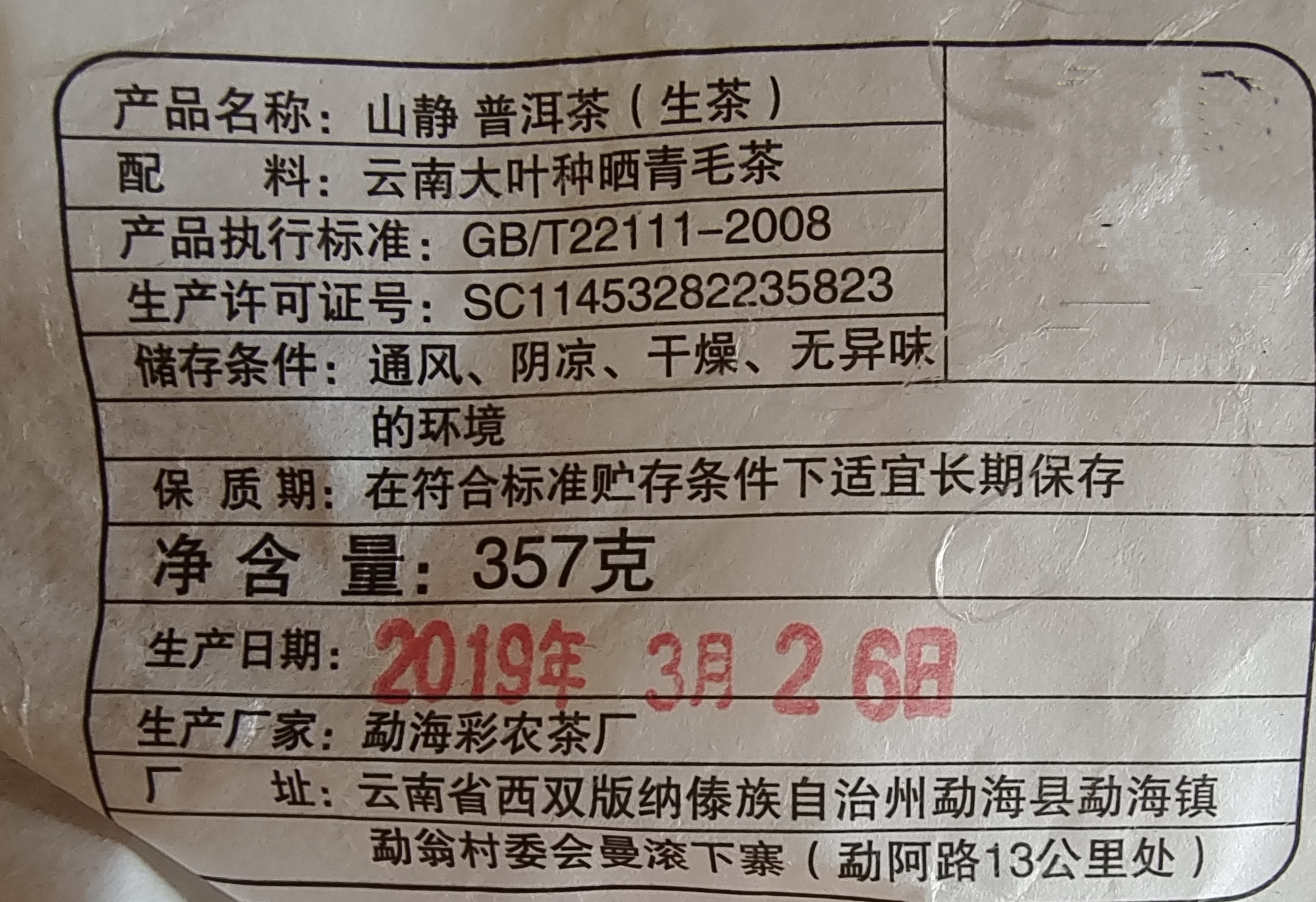 2019年彩农茶山静青饼,以勐海高山优质大叶乔茶为主料,坚持“全手工全程不落地”的核心工艺,匠心拼配而成。山静青饼,扬茶之优点、抑茶之缺点,诠释了拼配茶的特有魅力,同时彩农茶独特工艺,为山静青饼留足了后期转化的空间和可能性。因此,无论当下品饮,还是存放一段时间再开喝,山静青饼都带给味蕾极大的惊喜。