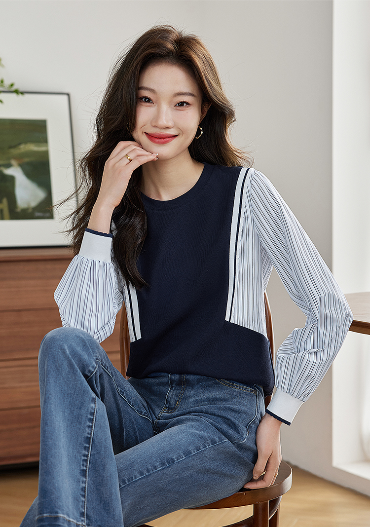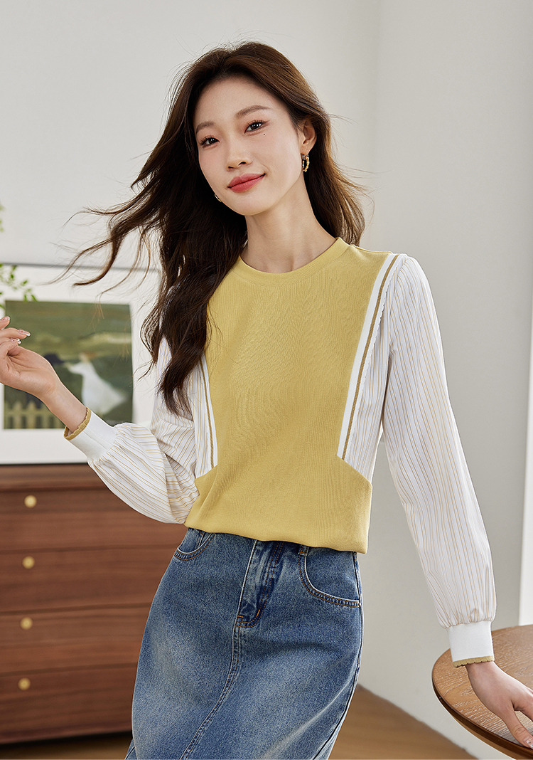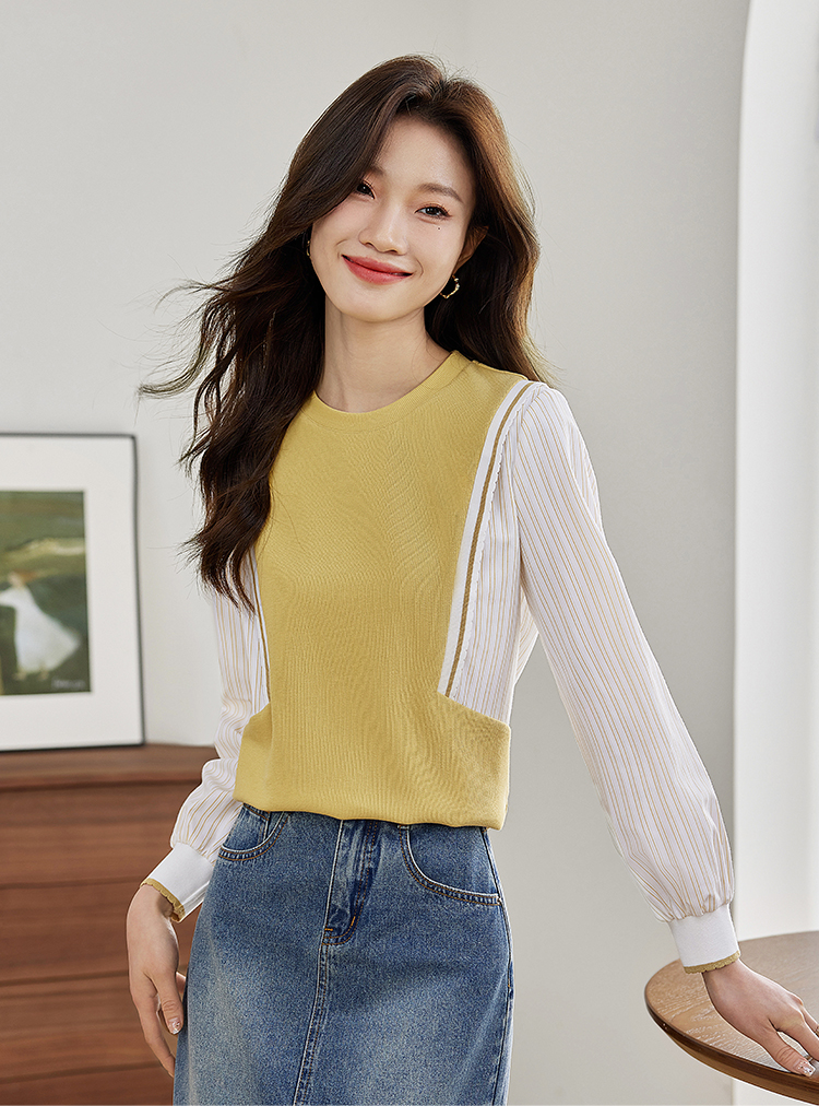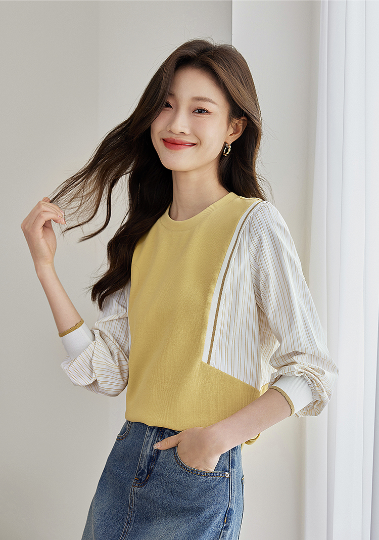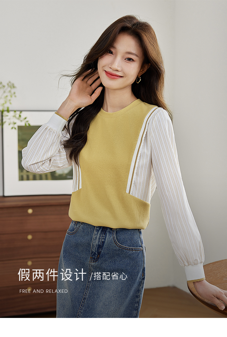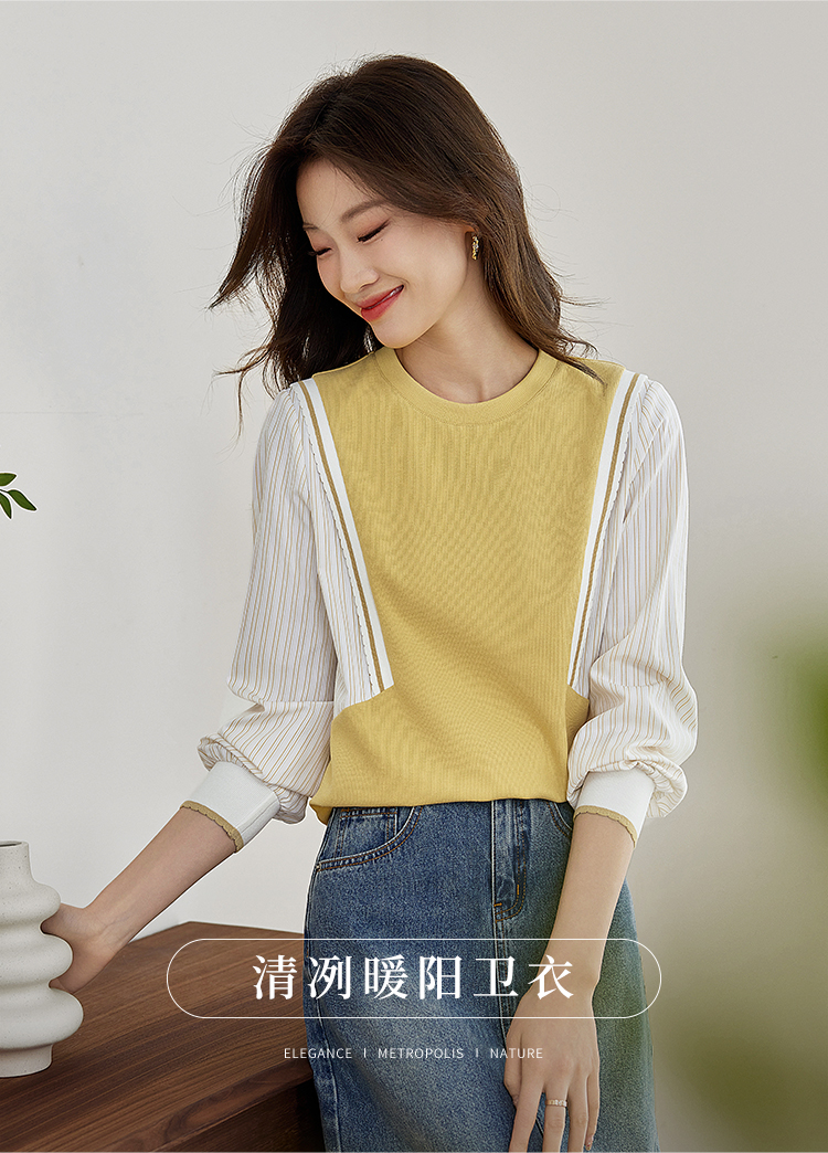 【1件75折】熙世界拼接假两件卫衣2025秋新款洋气设计感圆领肌理针织上衣女