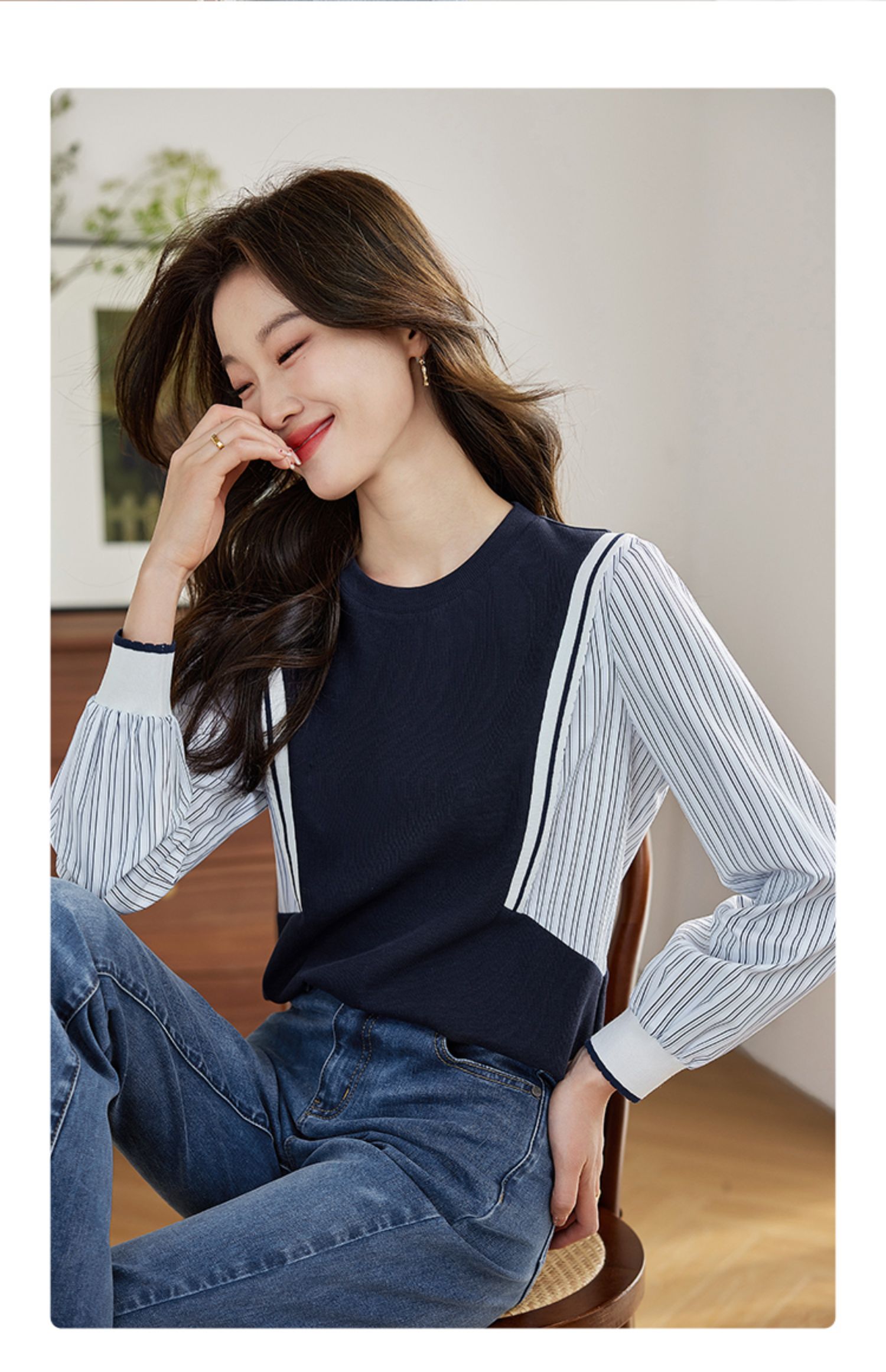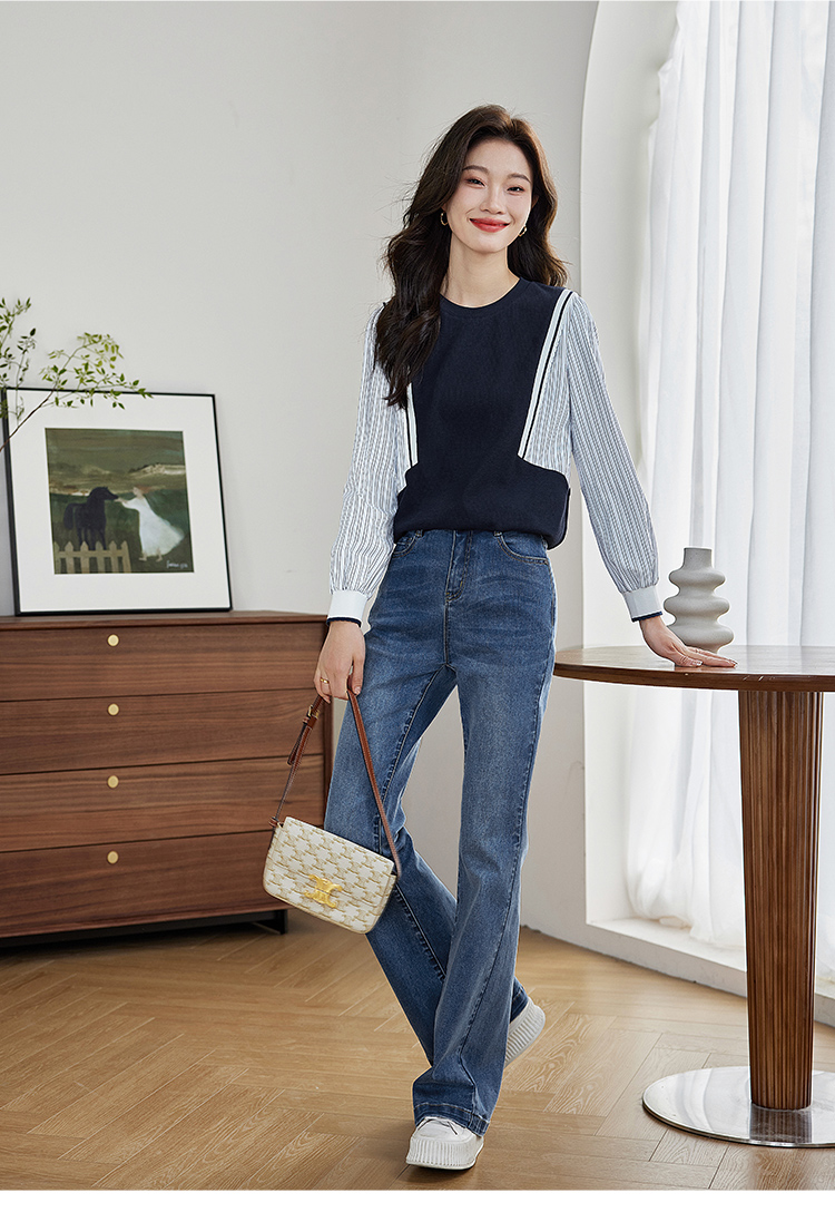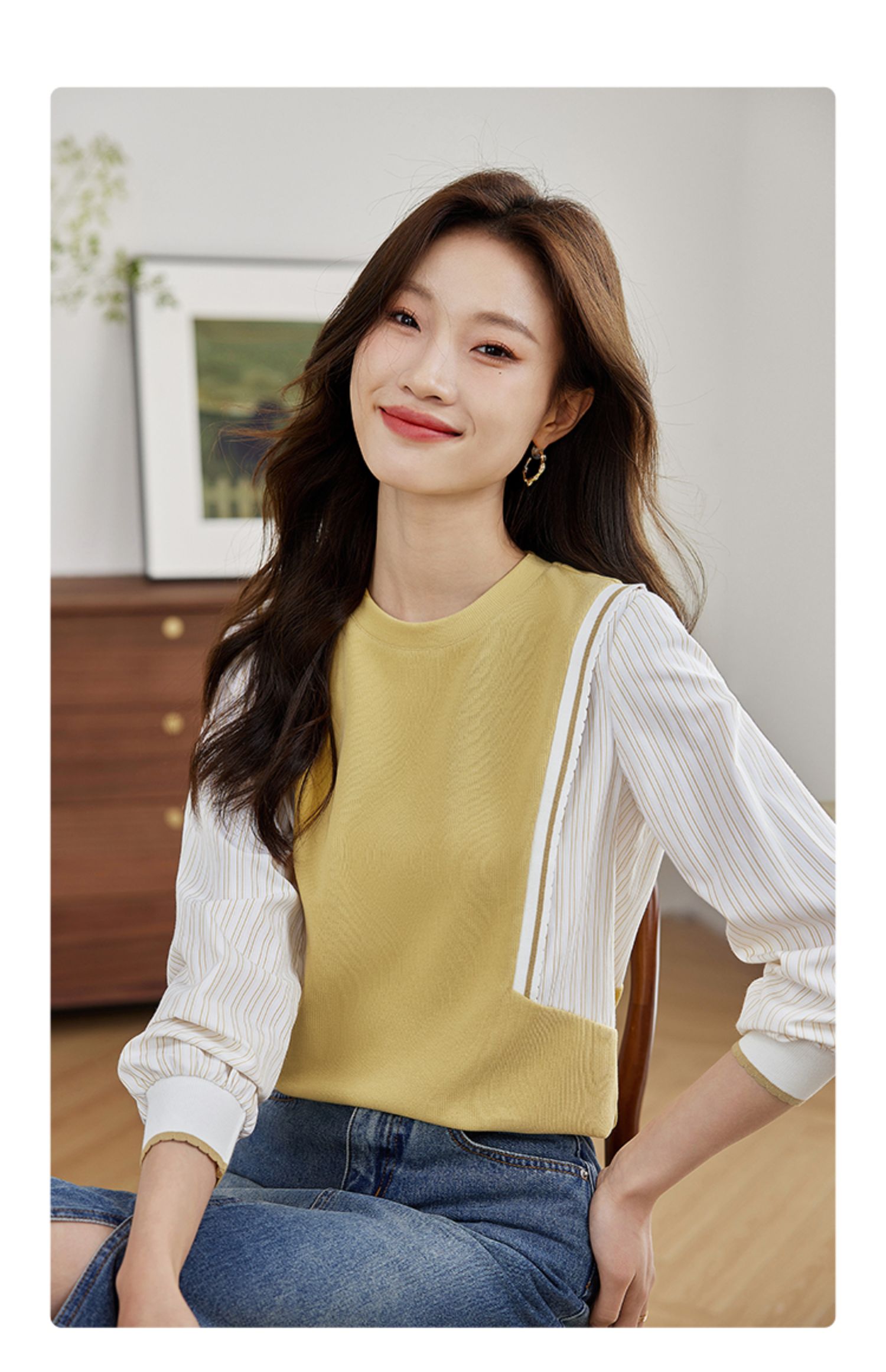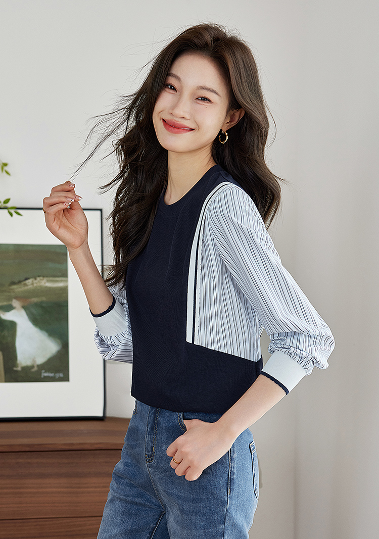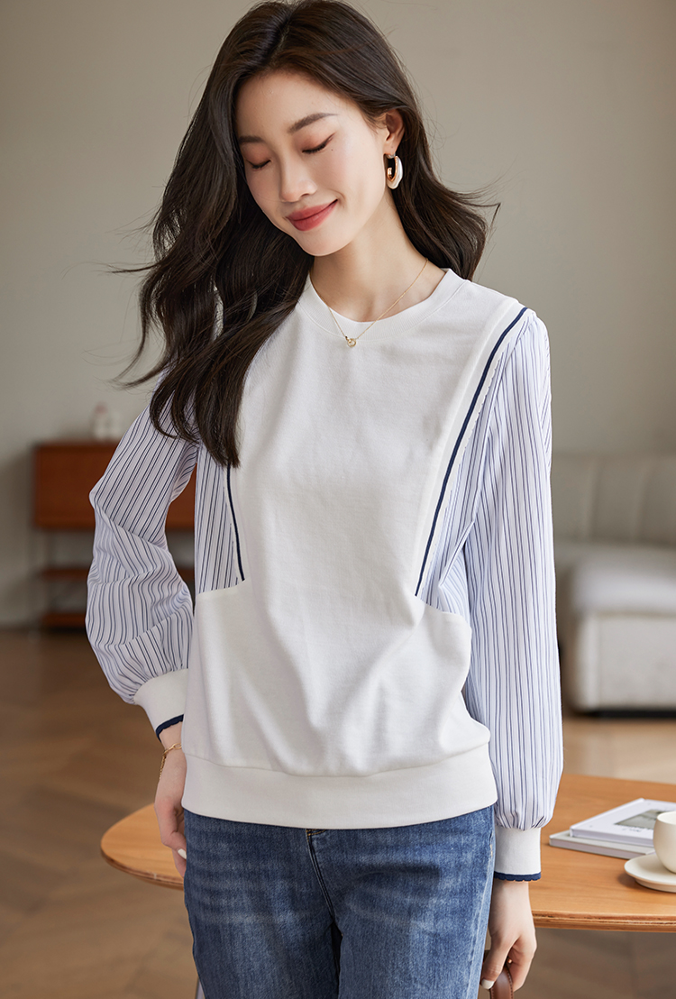 【1件75折】熙世界拼接假两件卫衣2025秋新款洋气设计感圆领肌理针织上衣女