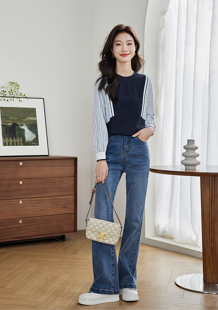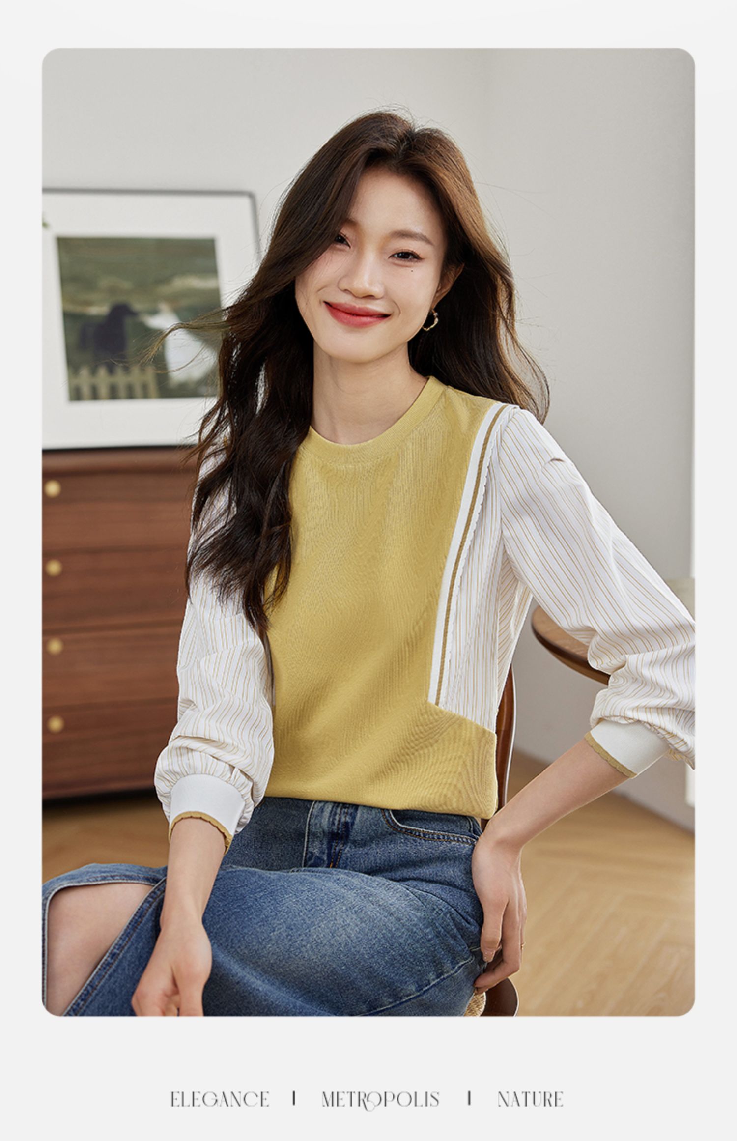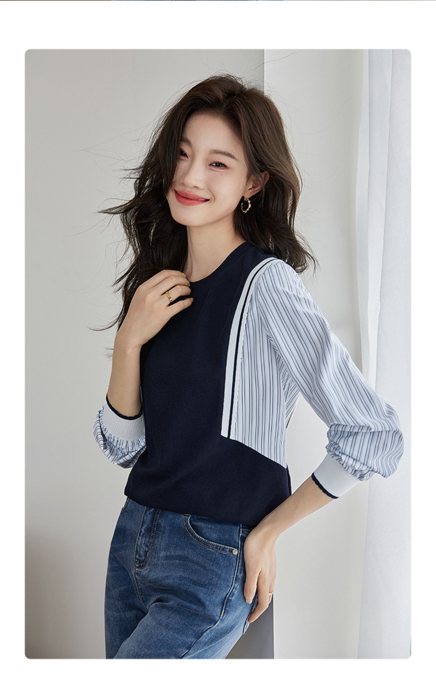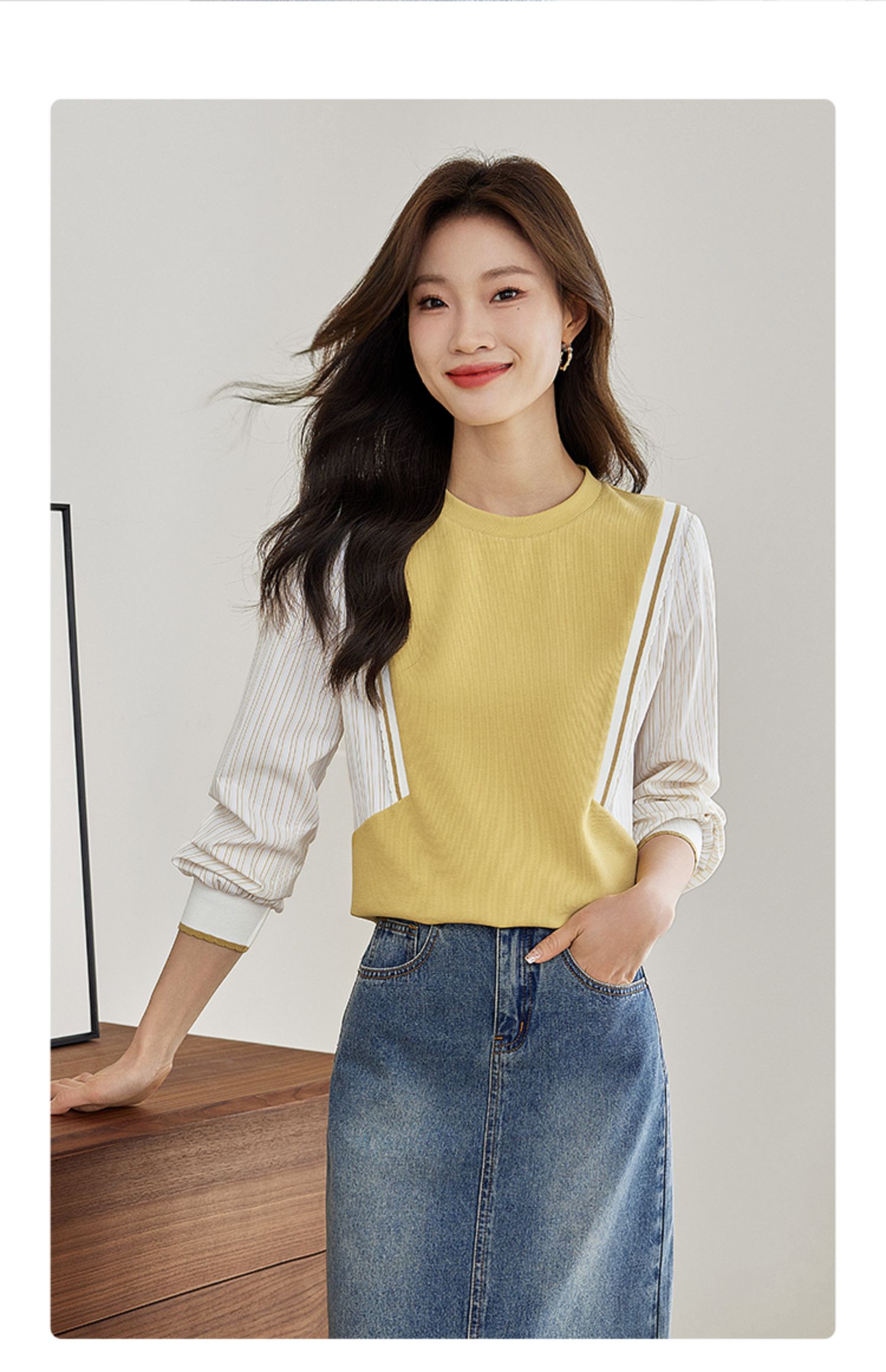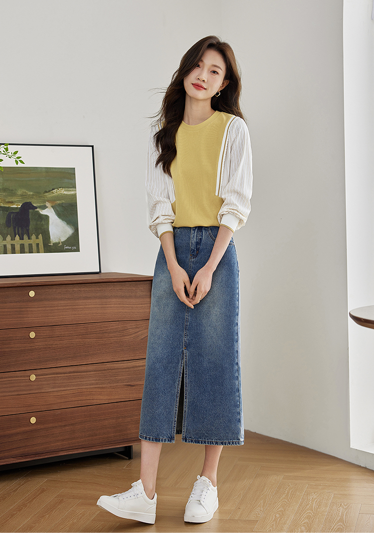 【1件75折】熙世界拼接假两件卫衣2025秋新款洋气设计感圆领肌理针织上衣女