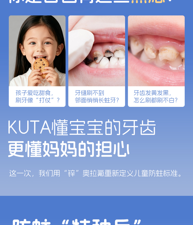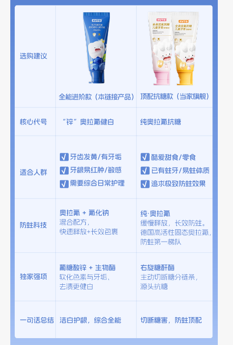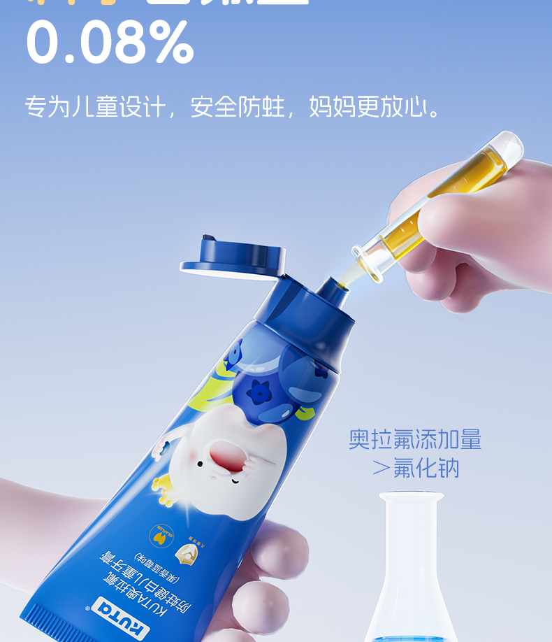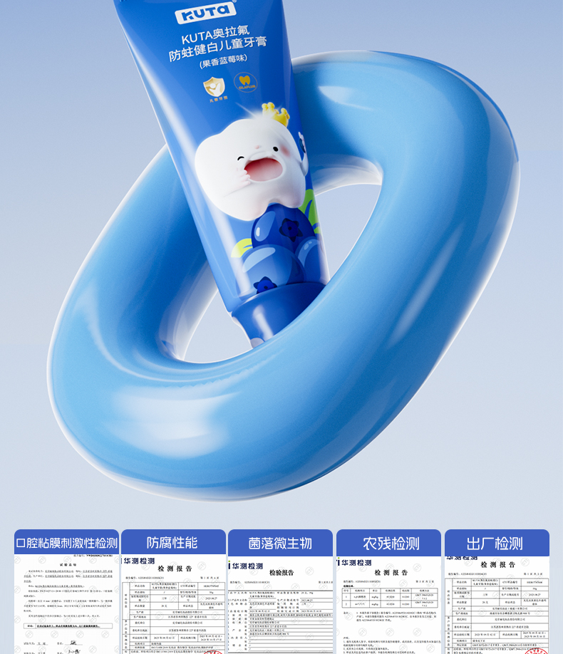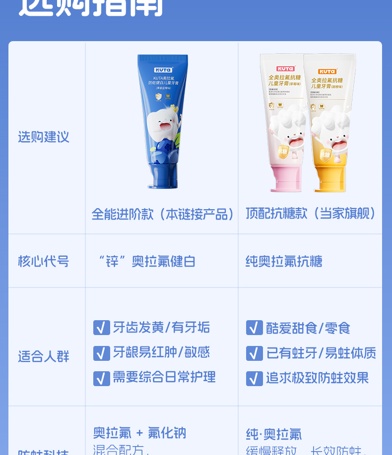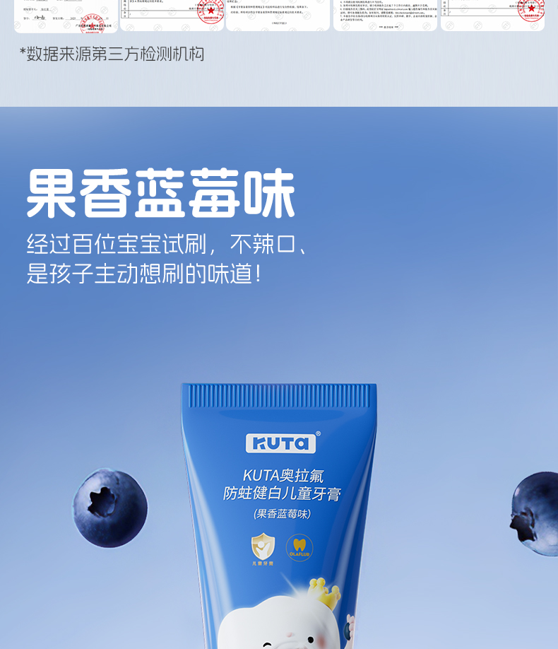 KUTA儿童奥拉氟抗糖款(甜橙味/草莓味);健白奥拉氟氟化钠混配牙膏(蓝莓);50g/支【鱼圈vip福利】