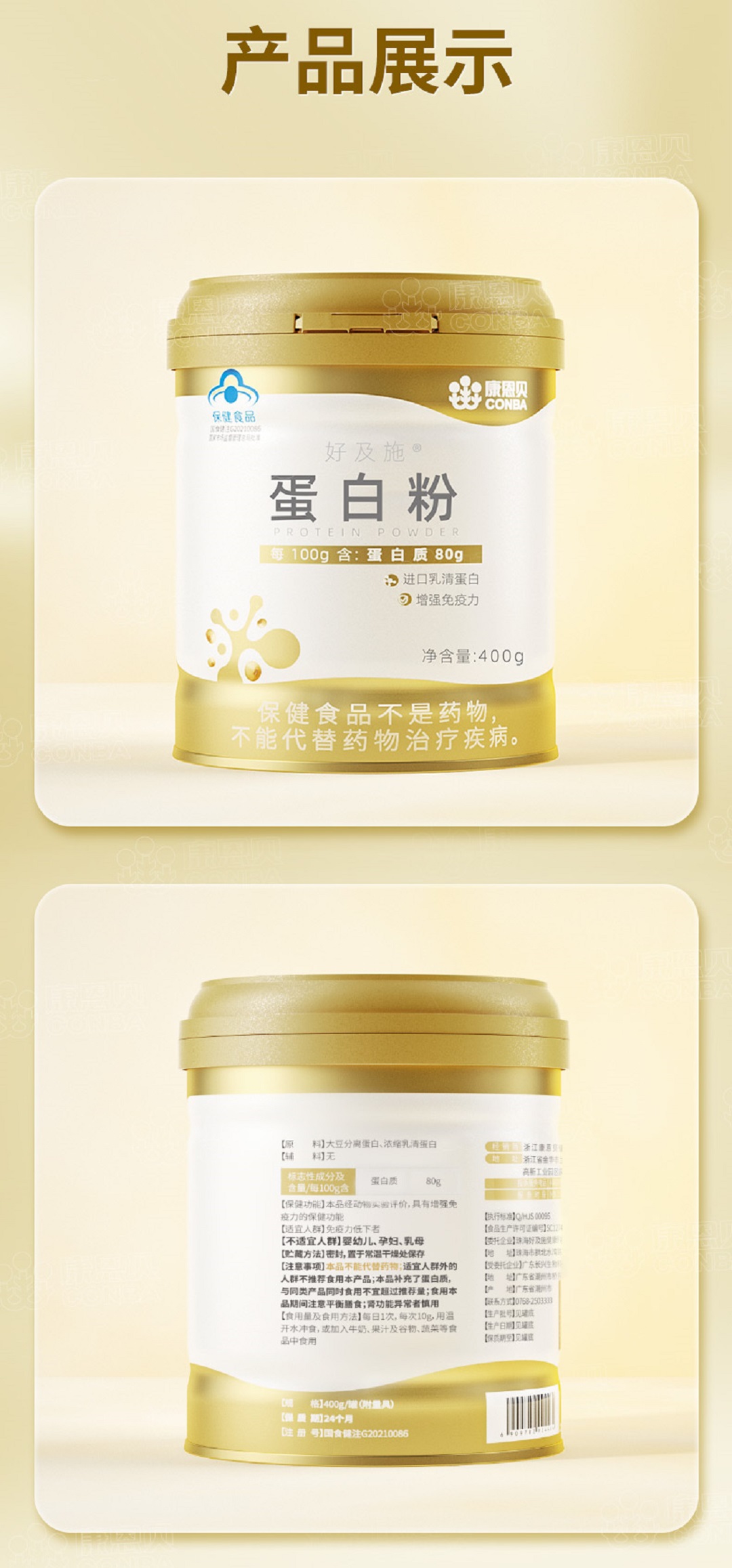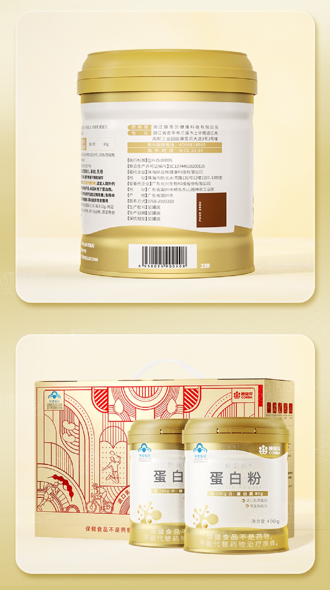 康恩贝好及施蛋白粉礼盒400g*2罐/份
