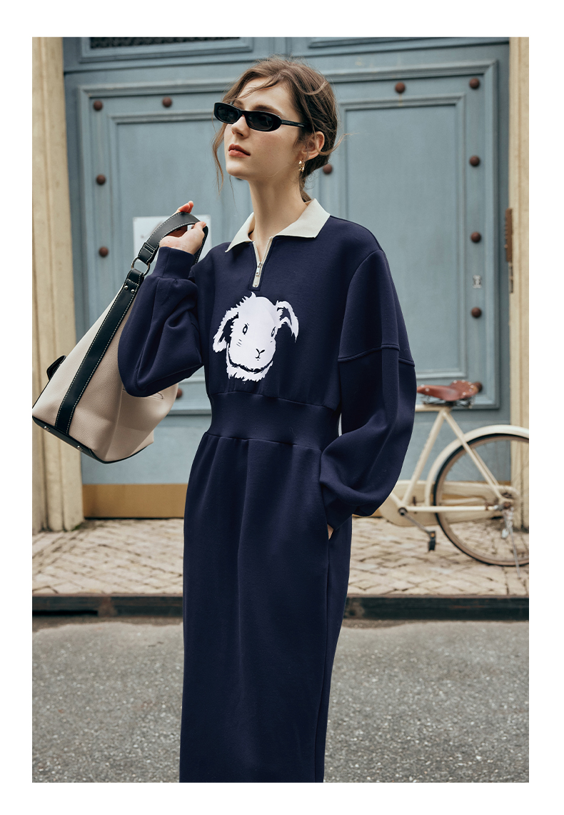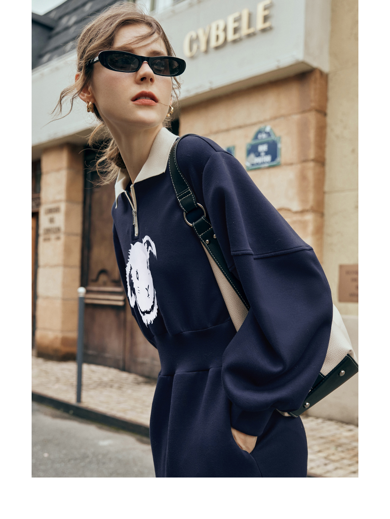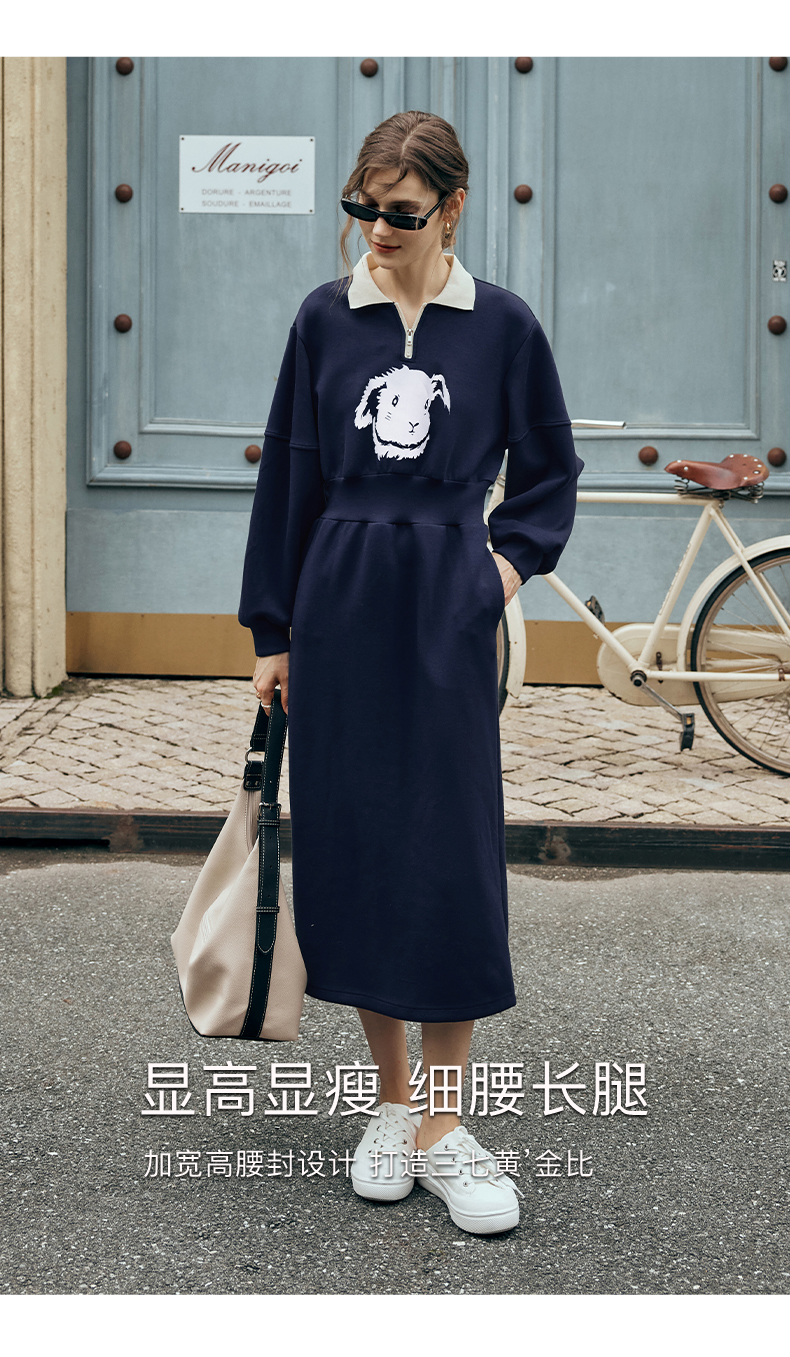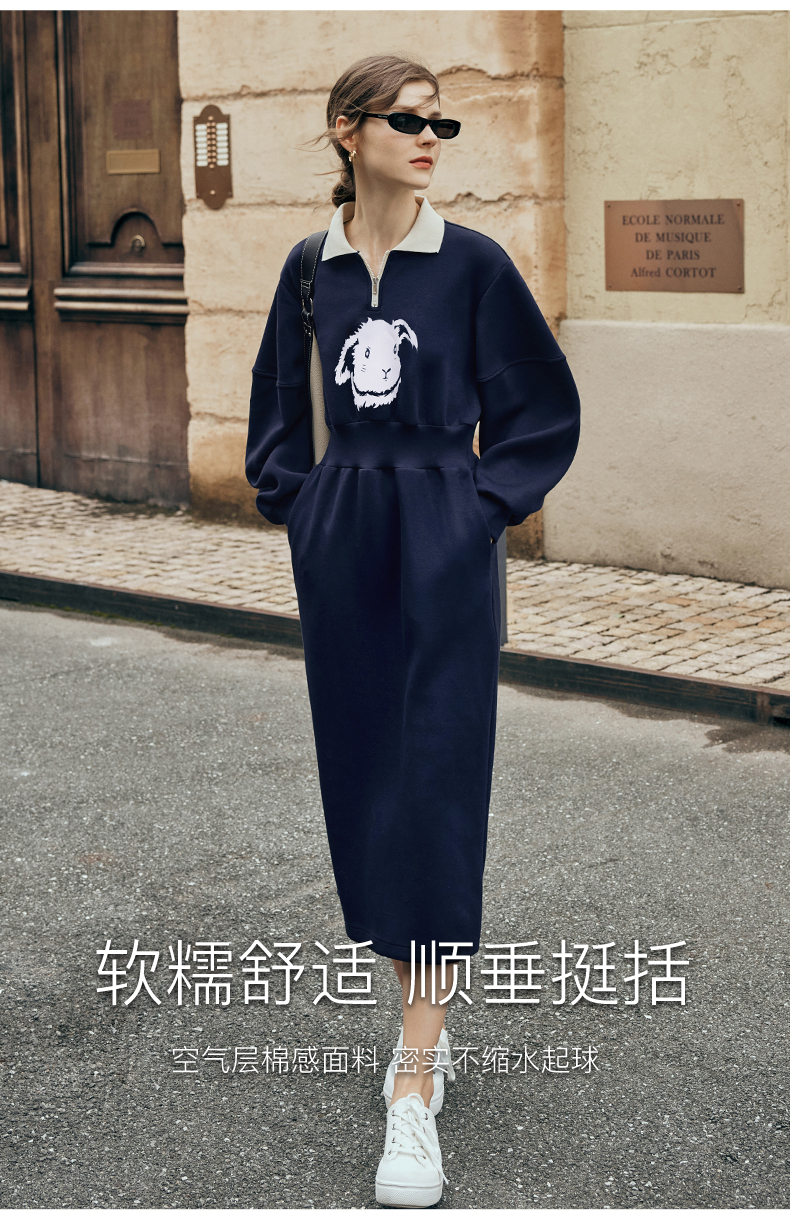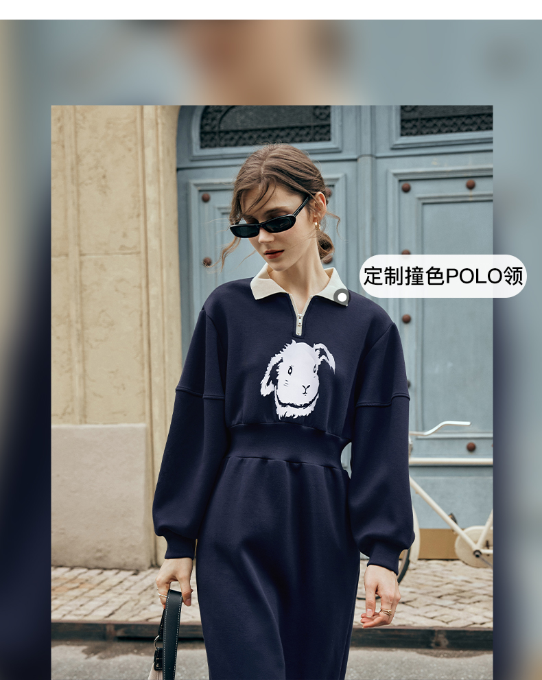 欧芮儿长袖Polo领卫衣连衣裙女高级感秋季2023年新款收腰长款休闲