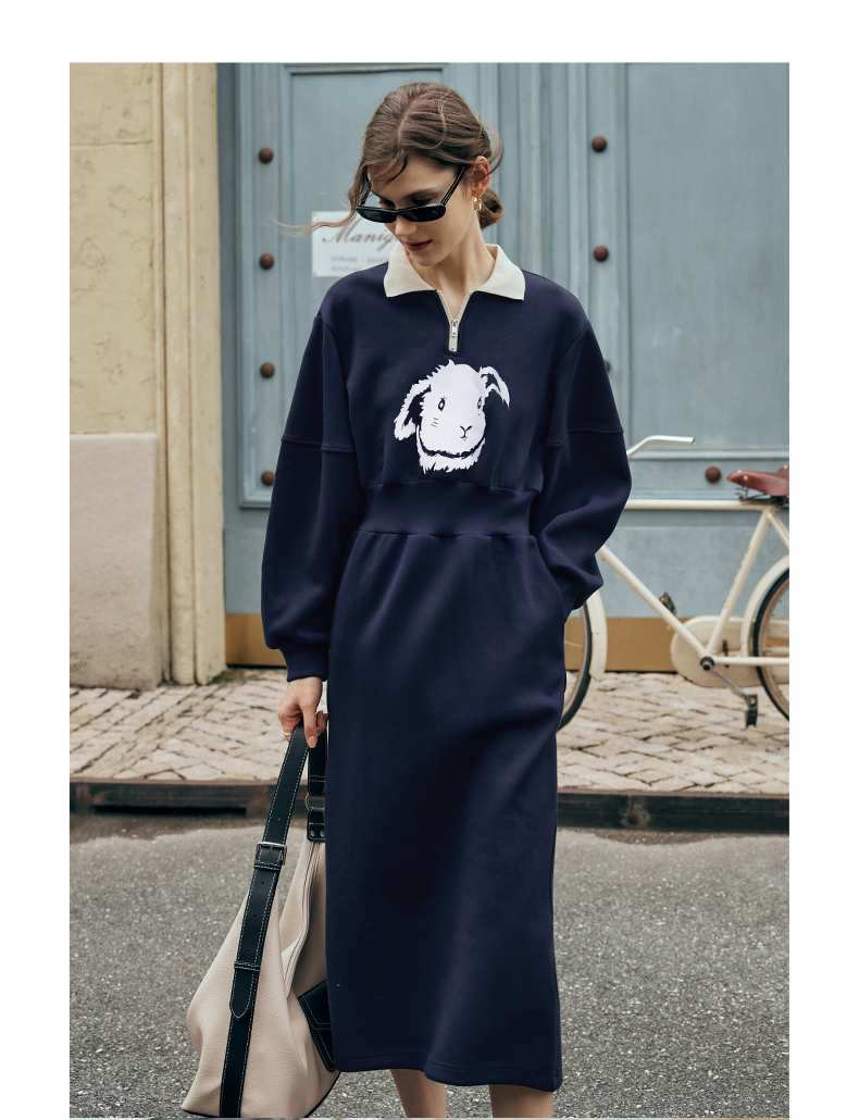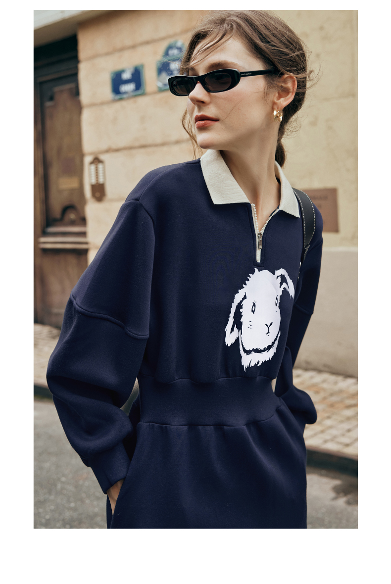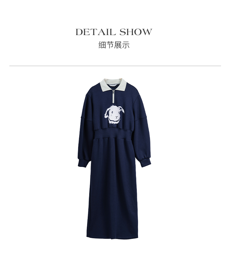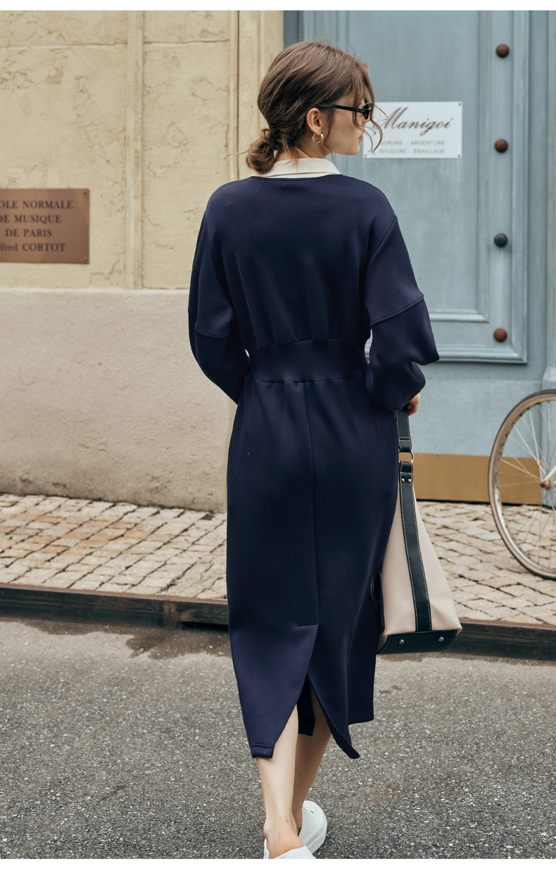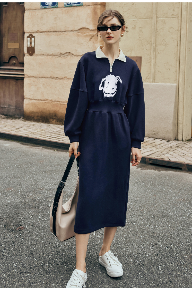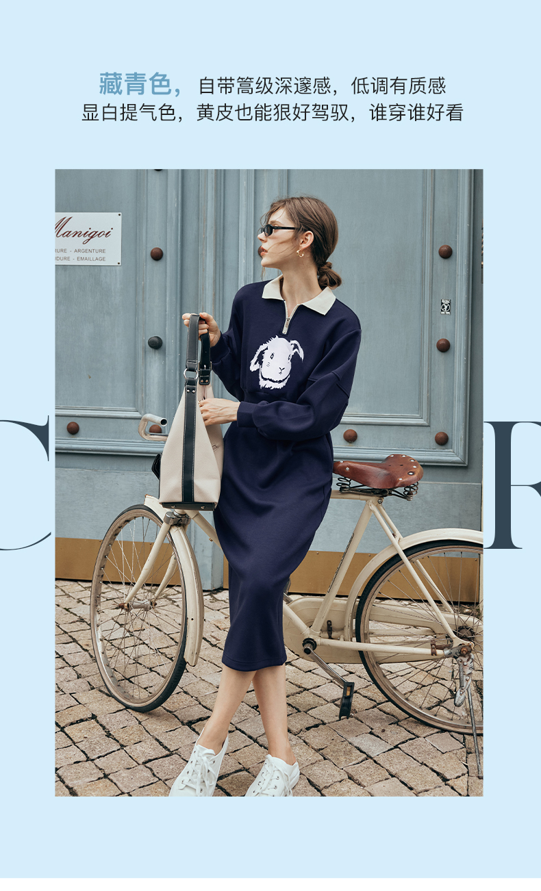 欧芮儿长袖Polo领卫衣连衣裙女高级感秋季2023年新款收腰长款休闲