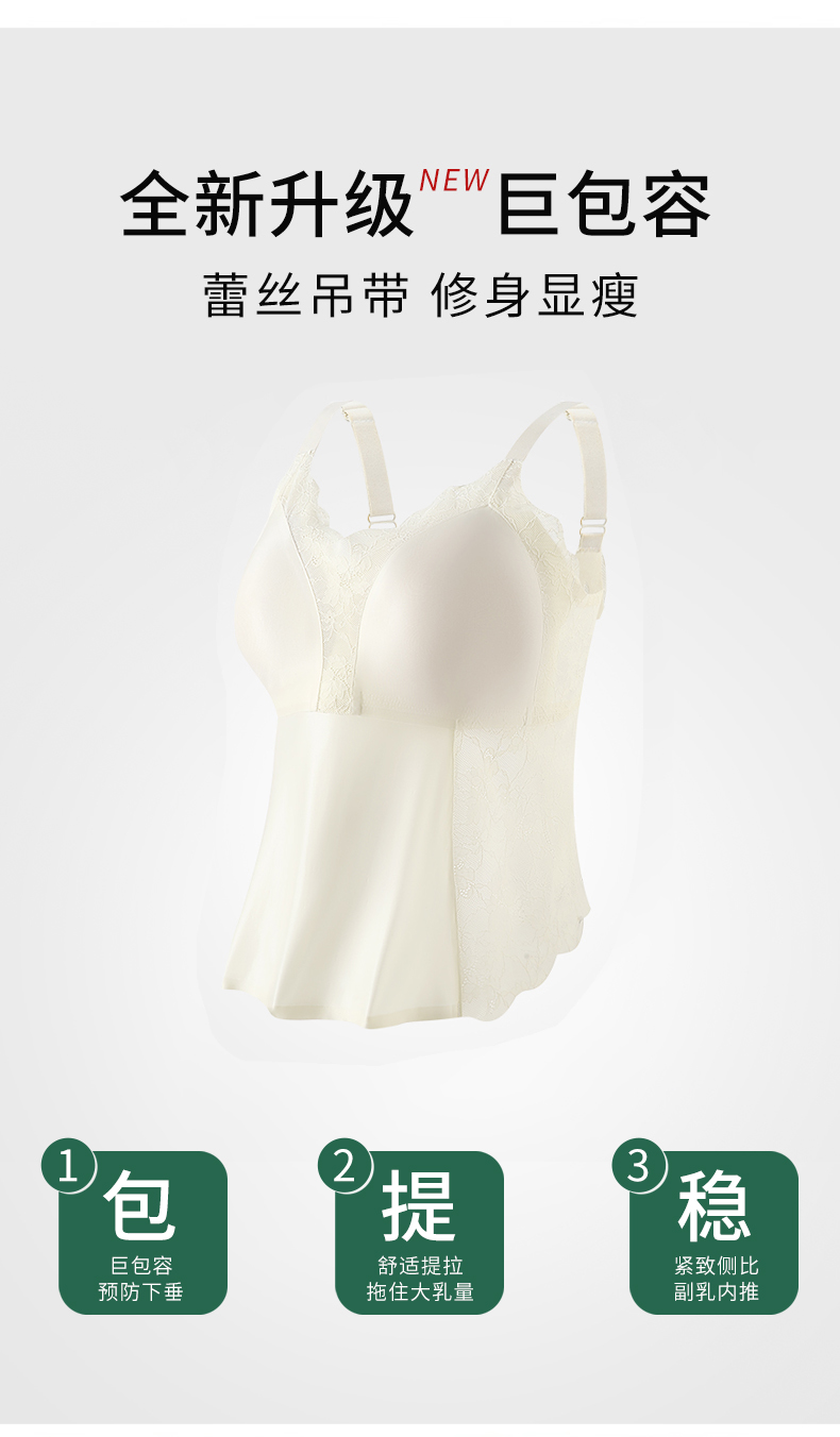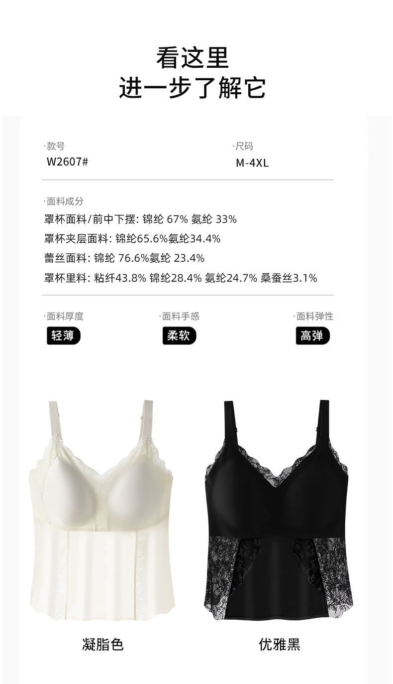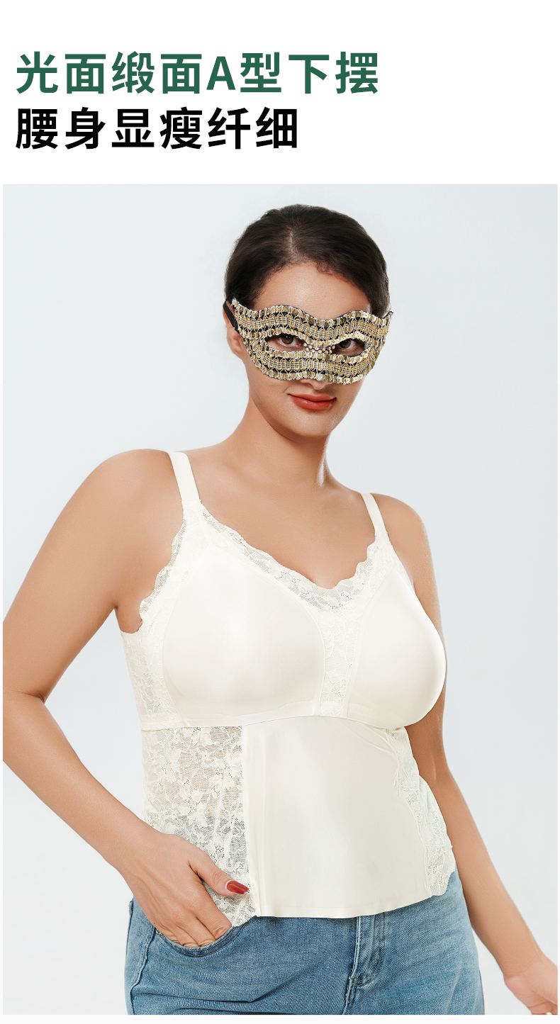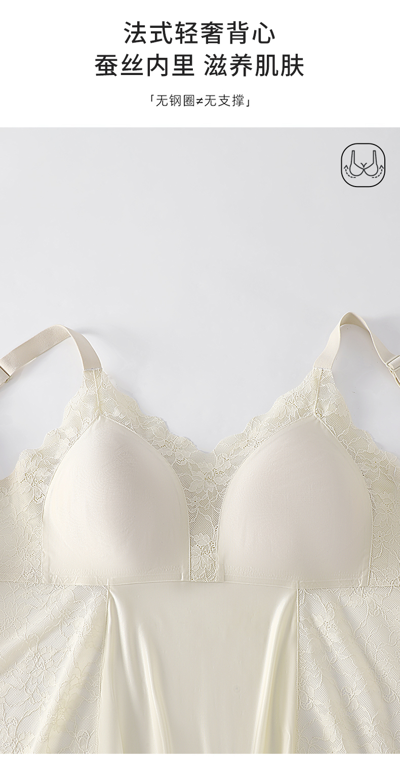 2026年新款免穿文胸桑蚕丝蕾丝美背大码吊带背心 -W2607#
