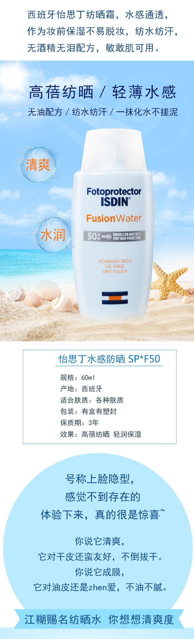 (超值)西班牙怡思丁ISDIN多维光护沁融水感防晒霜 60ml