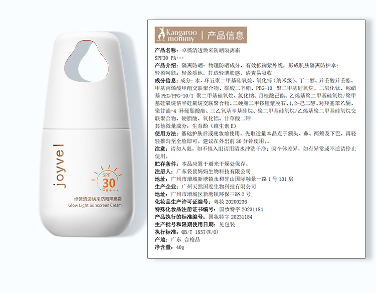 袋鼠妈妈 卓薇清透焕采防晒隔离霜40g*2 隔离匀亮 30倍防日晒