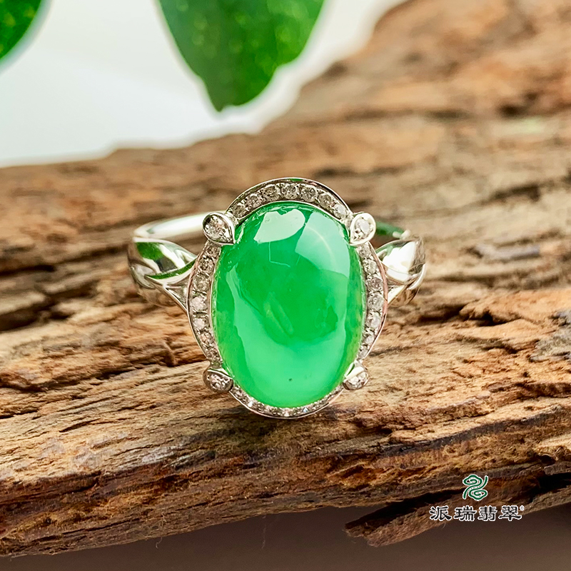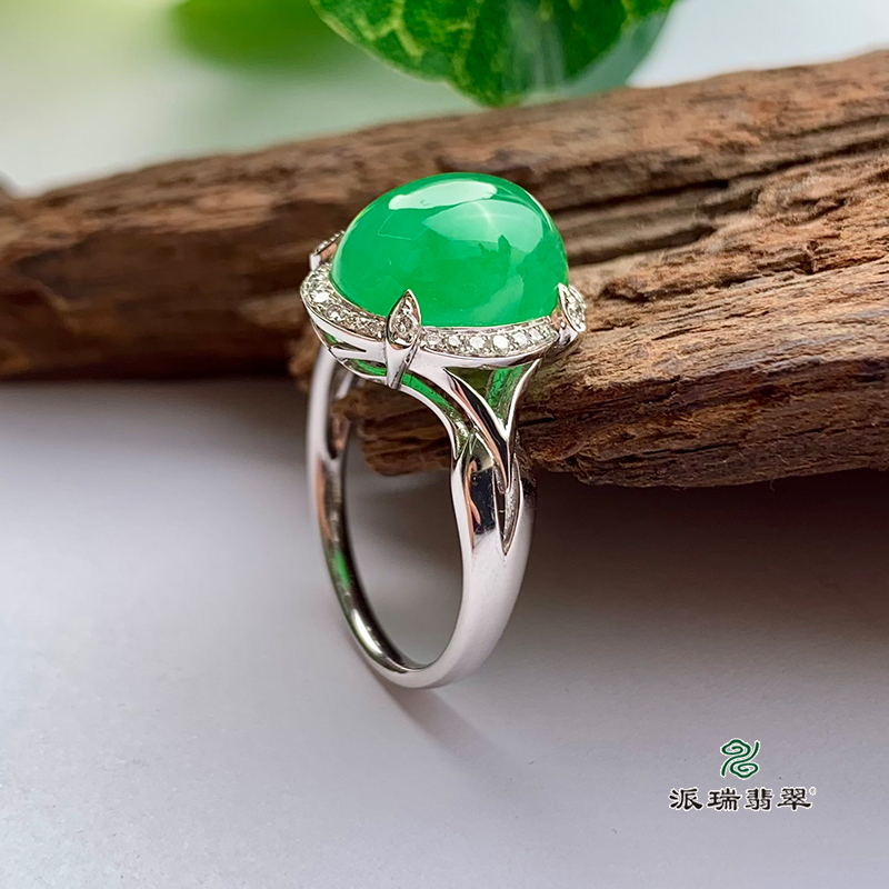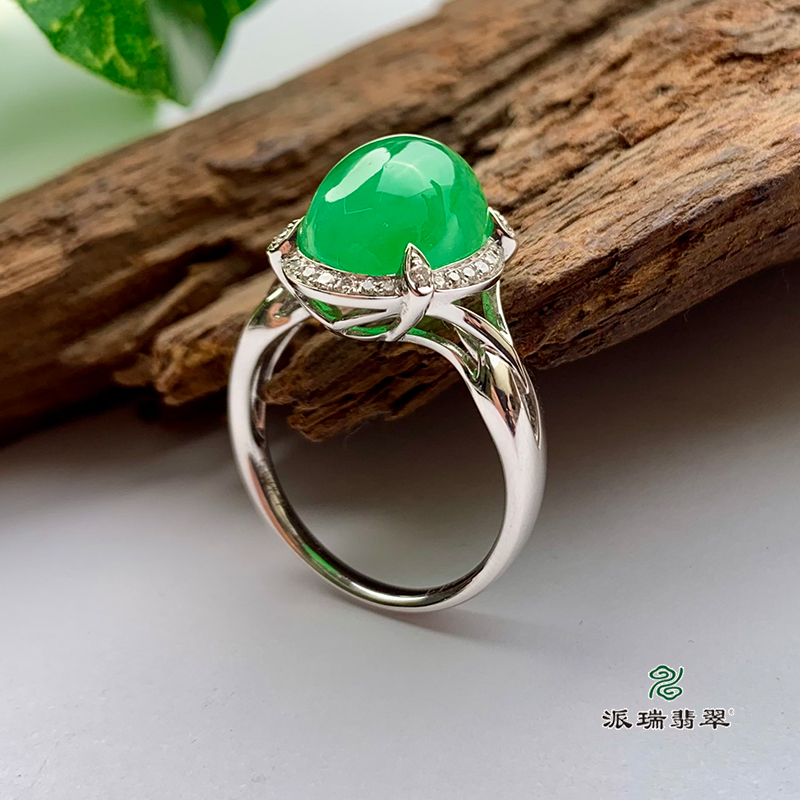 派瑞翡翠 18k金翡翠戒指 糯冰种 绿色