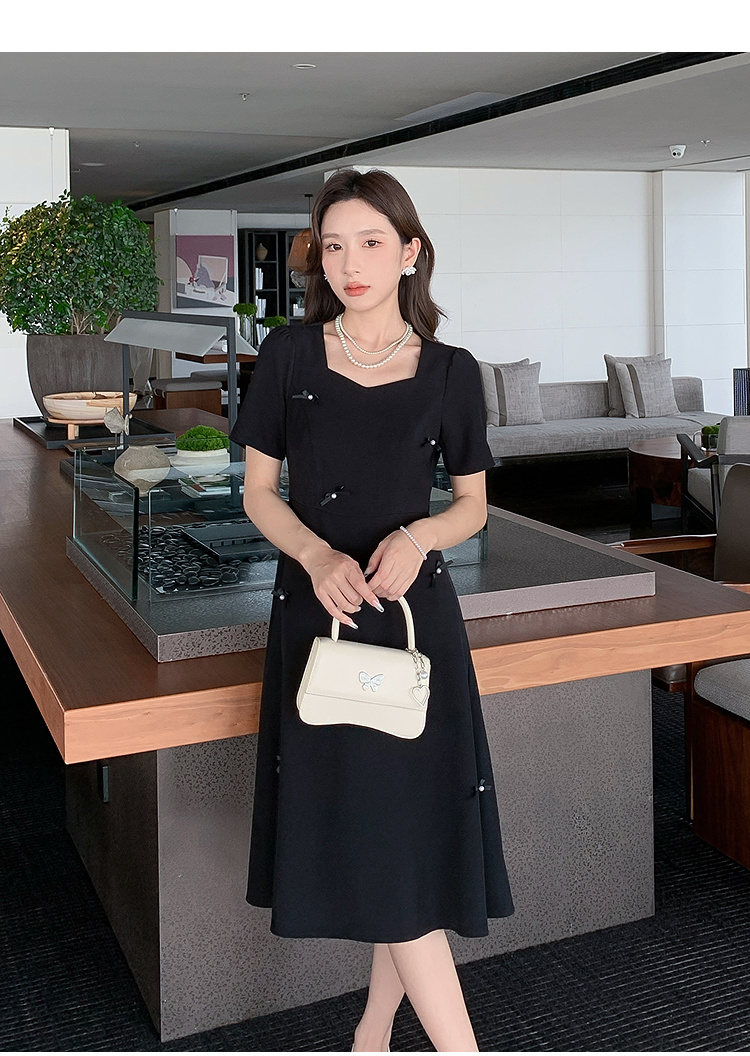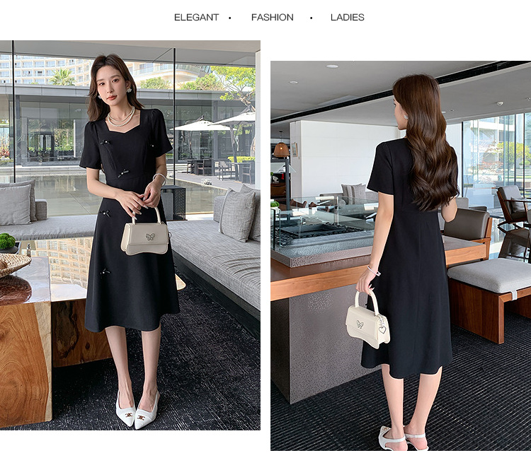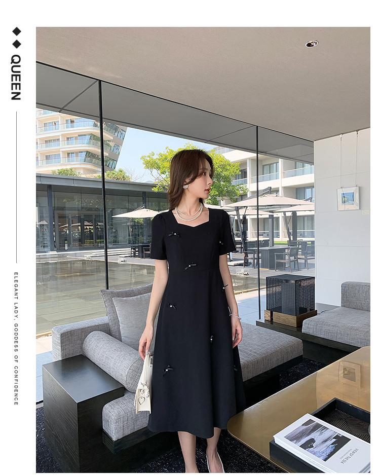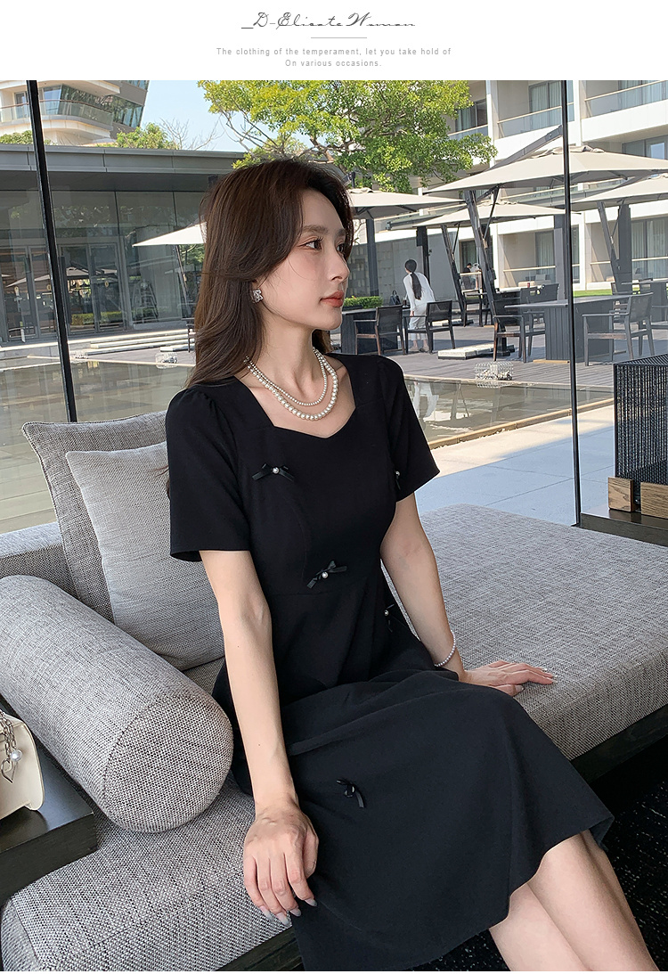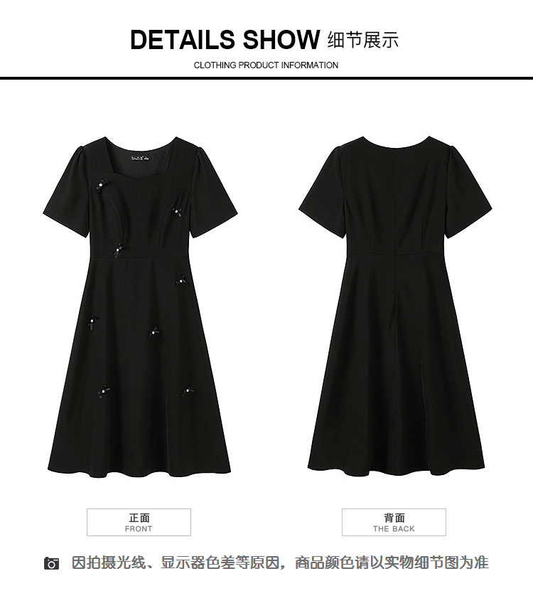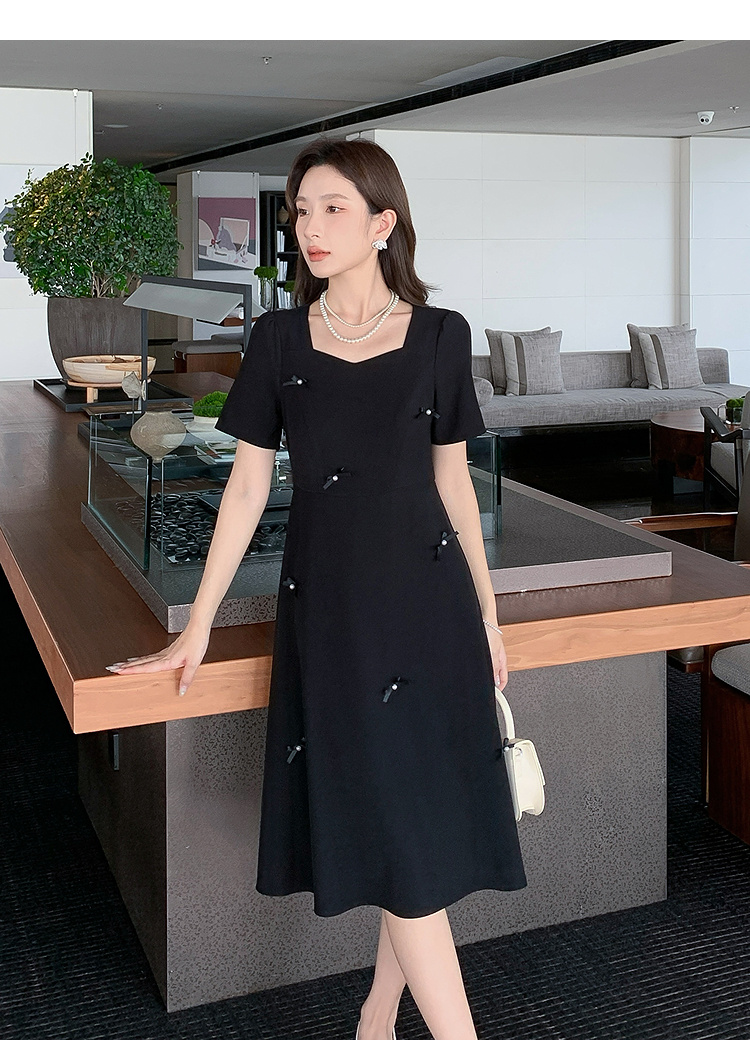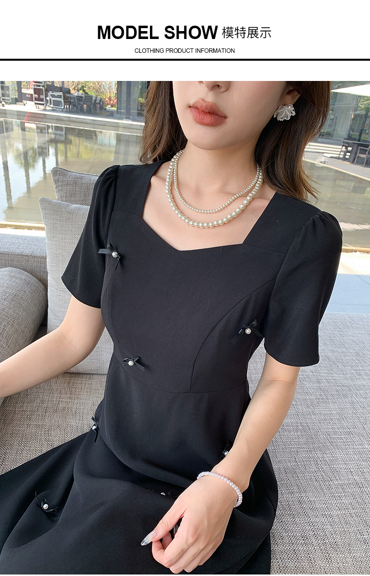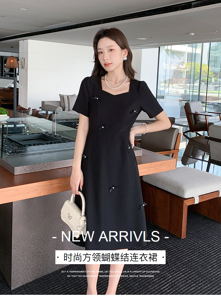 奢姿大码女装2025夏季时尚方领连衣裙胖妹妹气质蝴蝶结装饰裙子9952853212