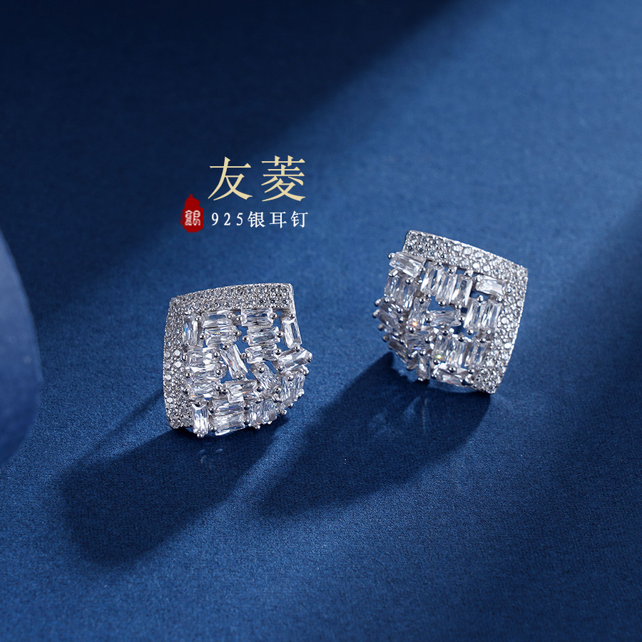 【寓意】:简约方形耳钉,表面微镶细闪锆石,灵动婉转,华贵优雅。寓意美丽年年,“方”华永驻。