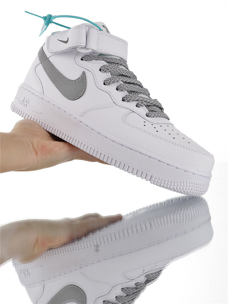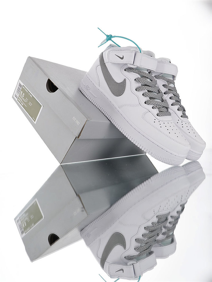 耐克Nike Air Force 1 Mid '07 LV8 耐克空军一号中帮经典百搭休闲运动板鞋 皮革白黑3M天使皮革白银3M天使