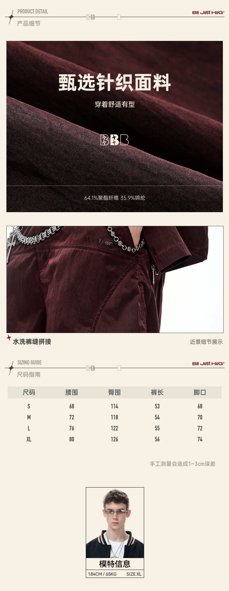 BJHG不计后果运动休闲轻薄短裤男夏2025新款潮流宽松水洗户外裤子