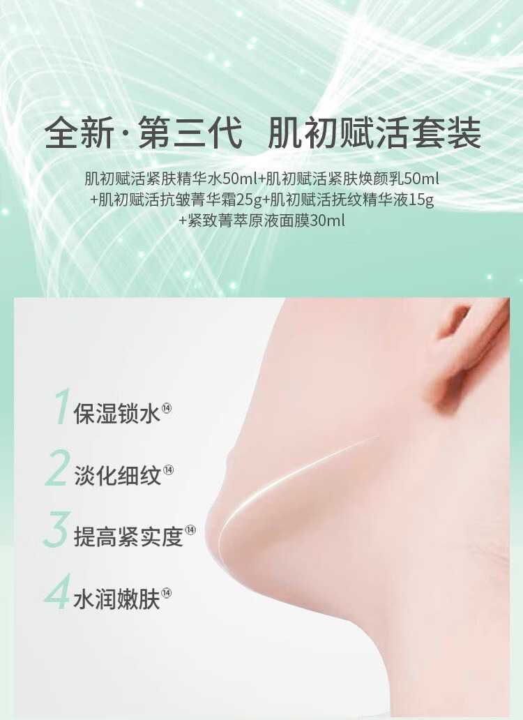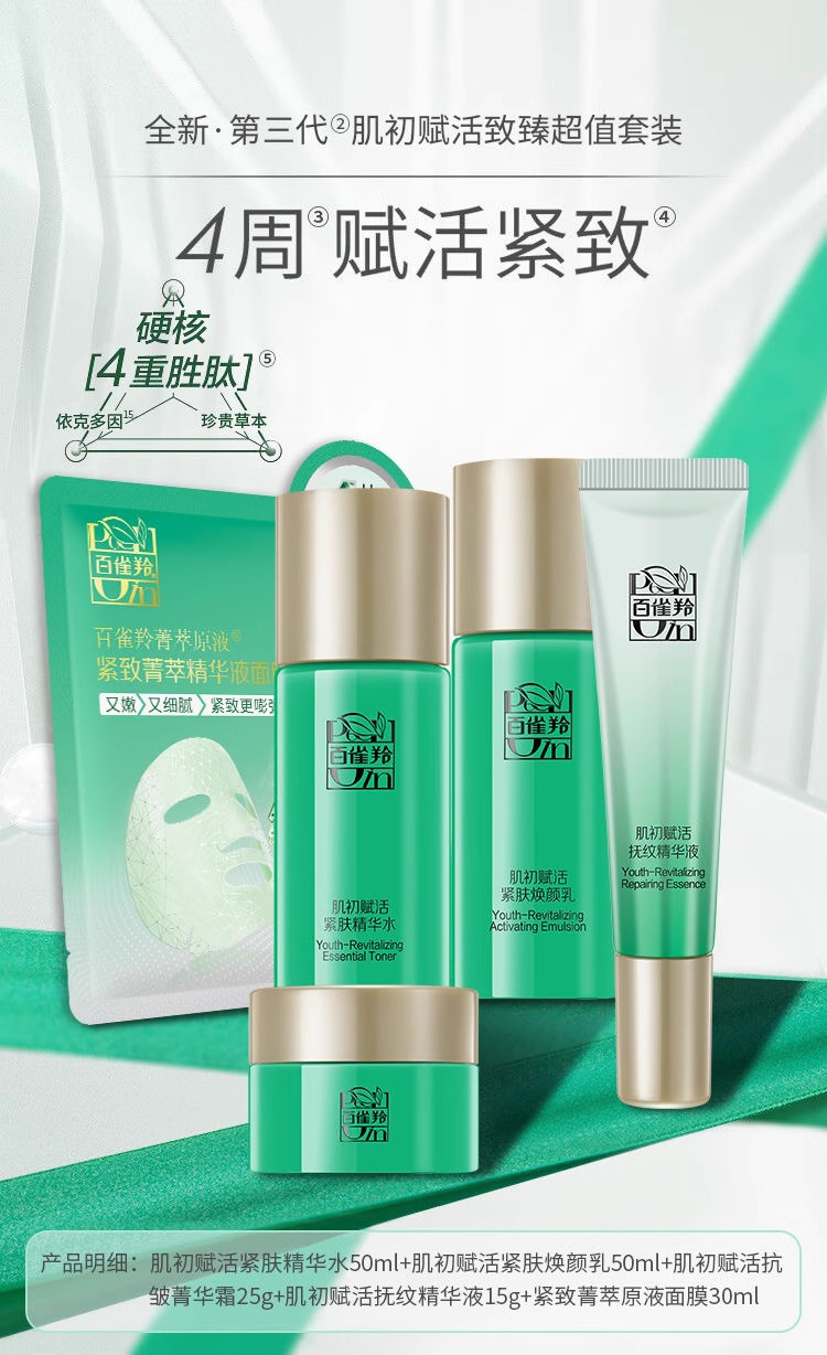 百雀羚肌初赋活致臻超值套装(50ml水+50ml乳+25g霜+15ml精华液+30ml单片面膜)