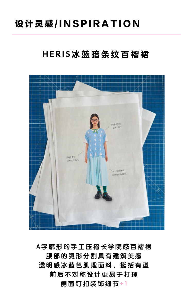 heris/H23114/重工百褶日常通勤A摆气质伞裙