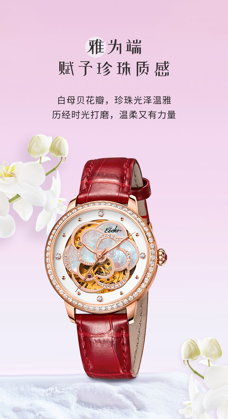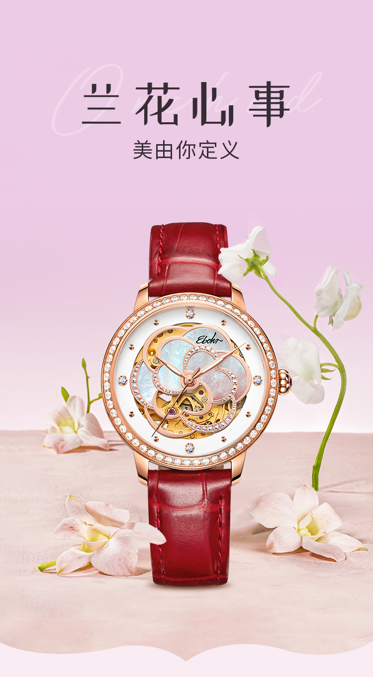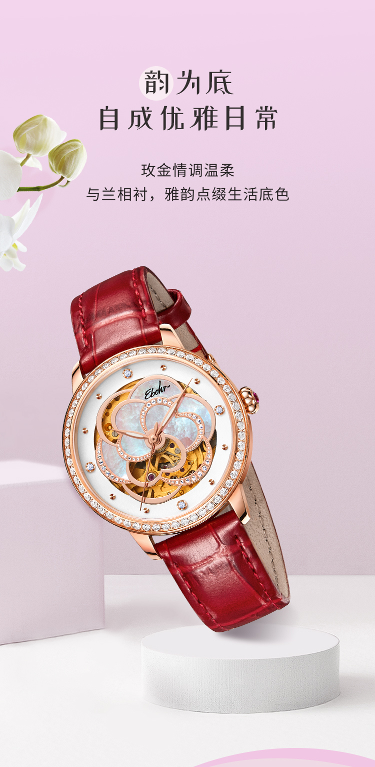 依波表EBOHR 卡纳系列典雅时尚机械手表女士腕表5674