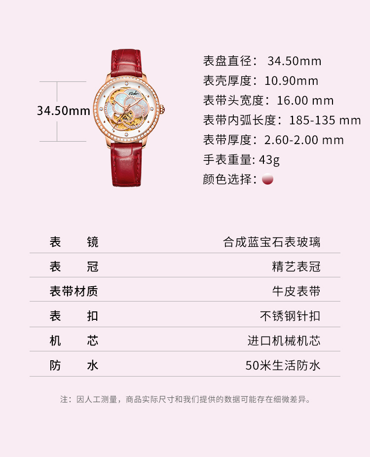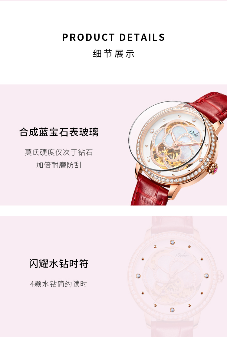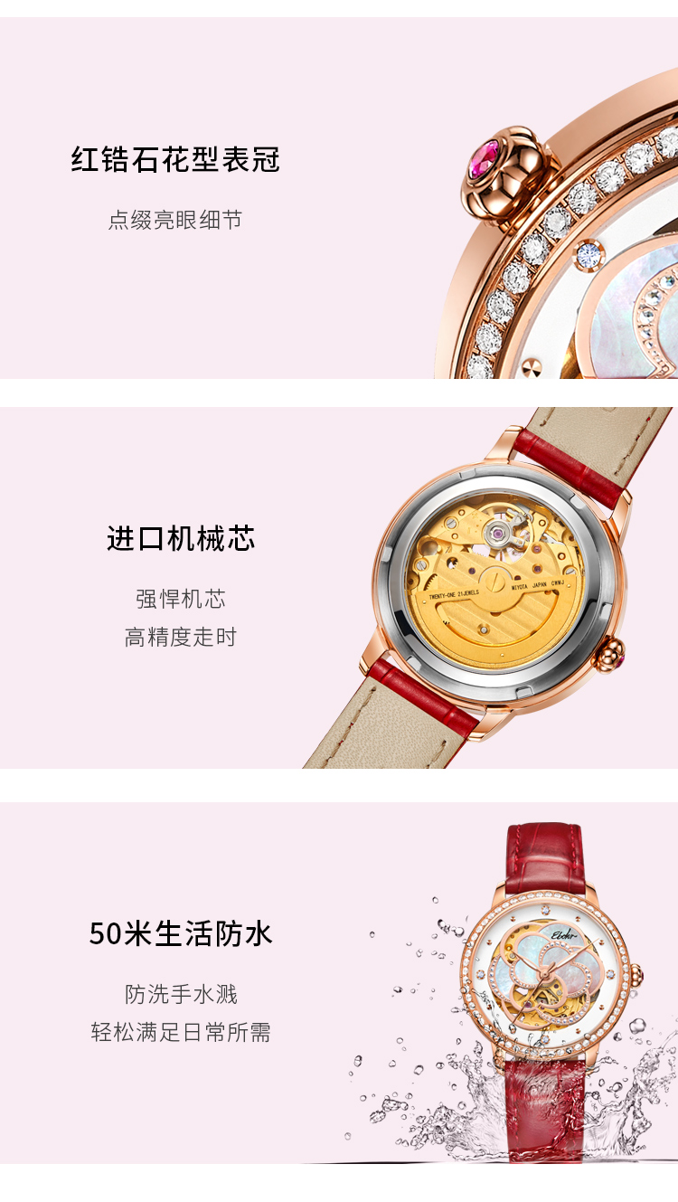 依波表EBOHR 卡纳系列时尚潮流镂空进口机械机芯46颗钻女士腕表5091