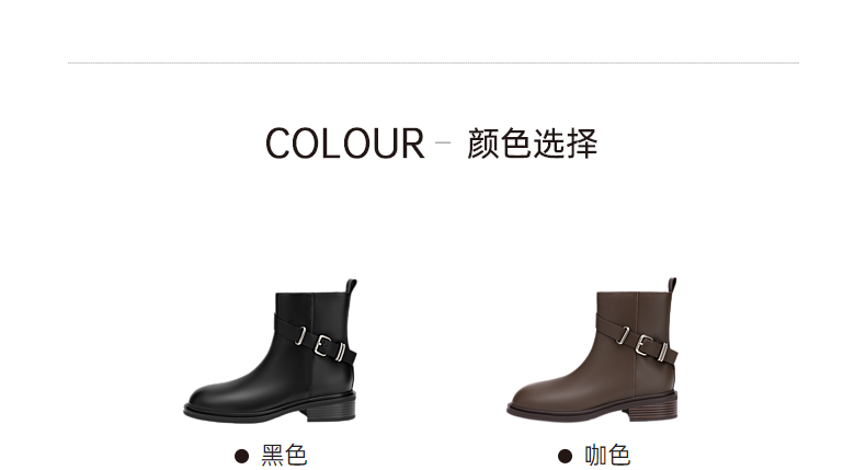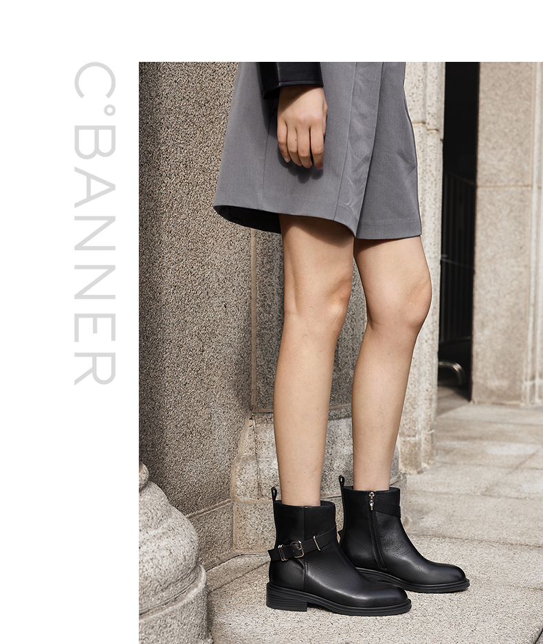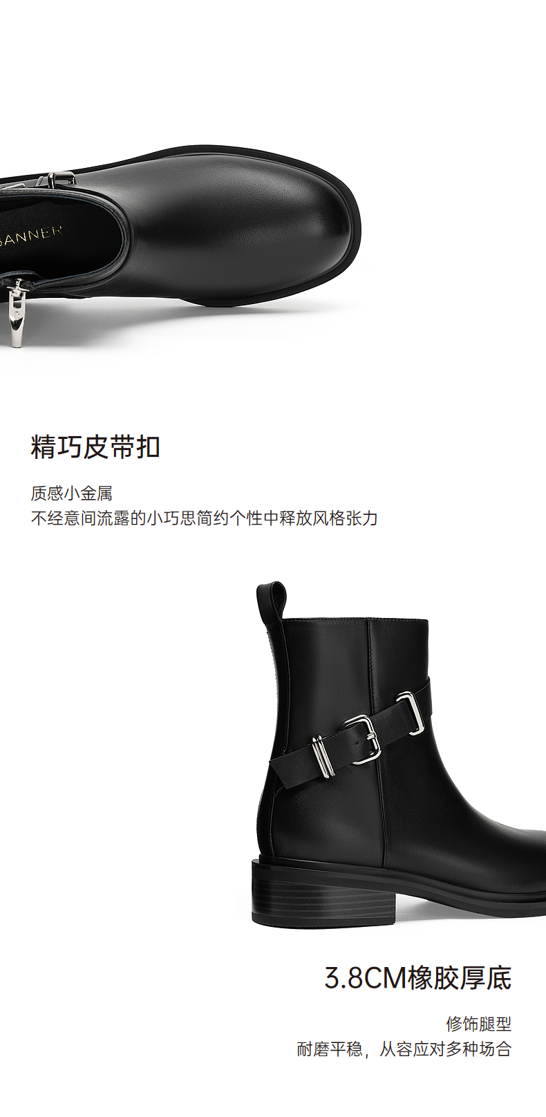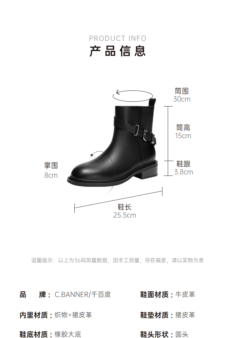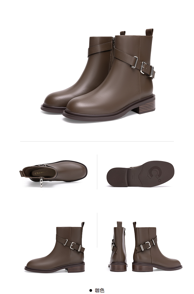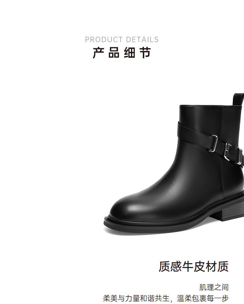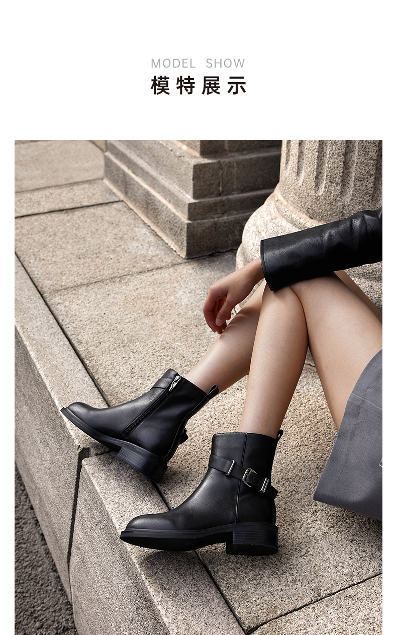 千百度中跟真皮时装靴女款秋冬通勤保暖小短靴A24557106
