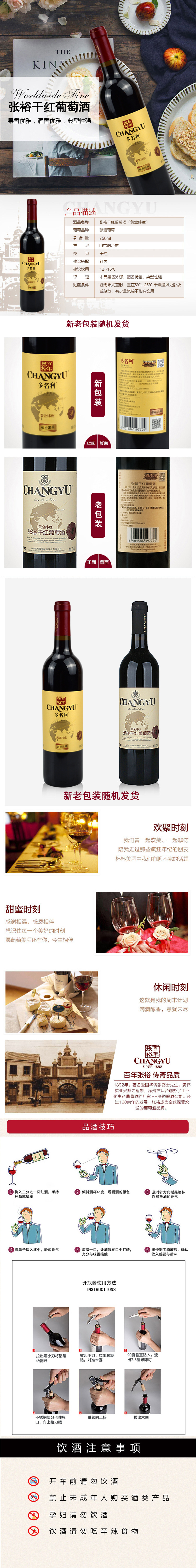 张裕多名利黄金纬度干红葡萄酒 整箱装 750ml*6瓶