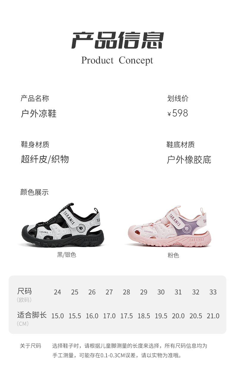 泰兰尼斯夏季儿童凉鞋男童包头沙滩鞋防滑透气户外运动溯溪鞋女 T07X5B7102