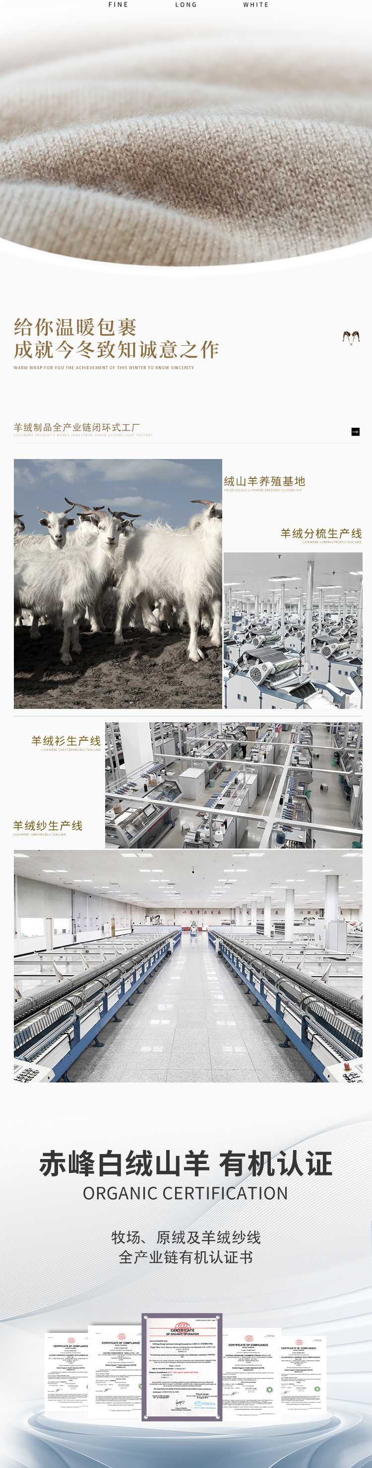 东黎羊绒是赤峰东荣集团自主品牌,自有牧场/羊绒制品全产业链优势,实现了羊绒从“牧场”到“商场”的华丽转变。