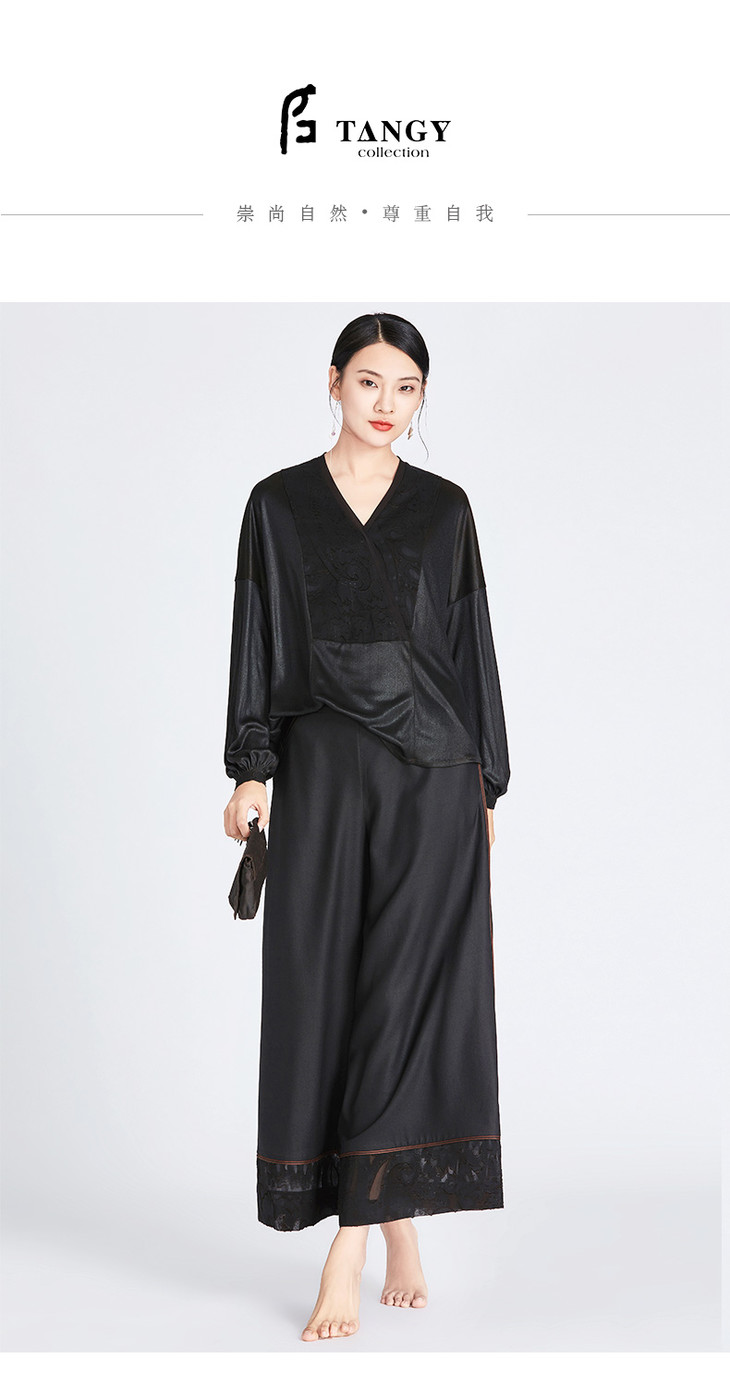 TANGY Collection天意莨绸拼接大脚裤