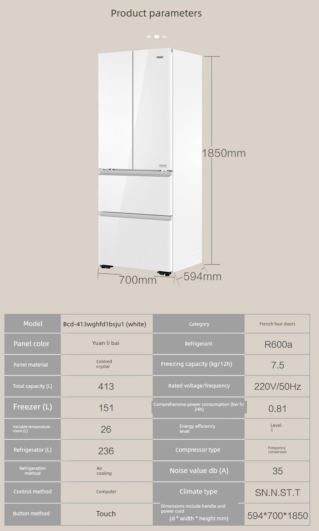 海尔冰箱家用一级能效BCD-413WGHFD1BSJU1(白)冰箱智能多功能厨房冰箱【粤湾】【双十一】