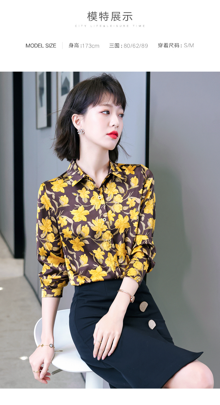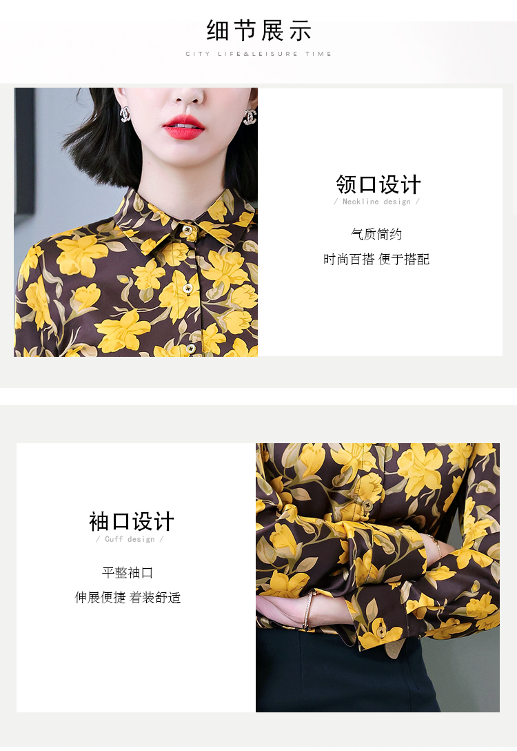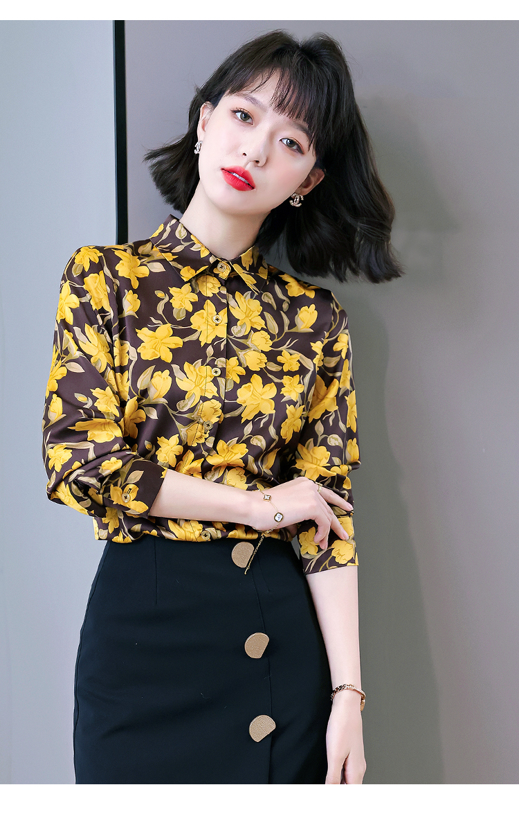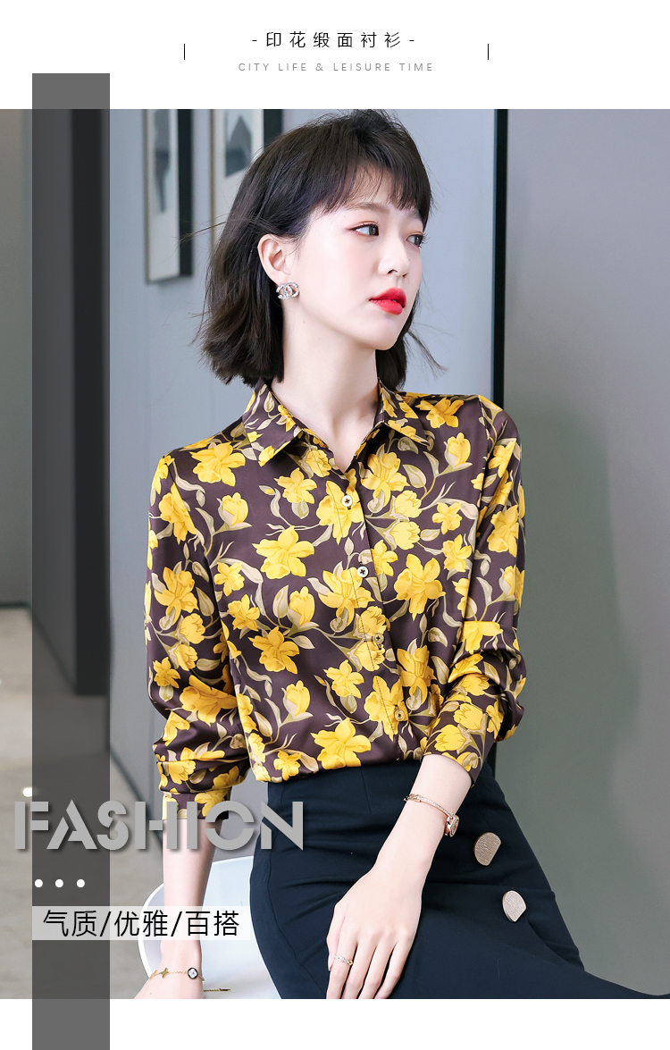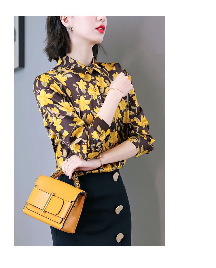 复古范时尚印花雪纺衫 2022春夏韩国缎面醋酸长袖单排扣衬衫女 NSM3169