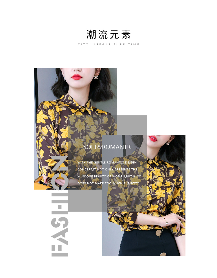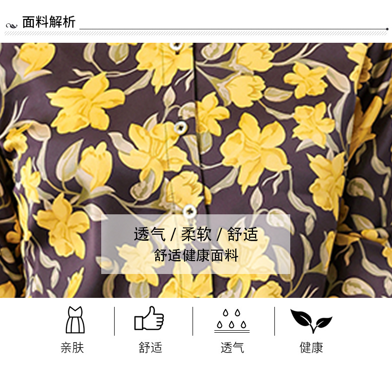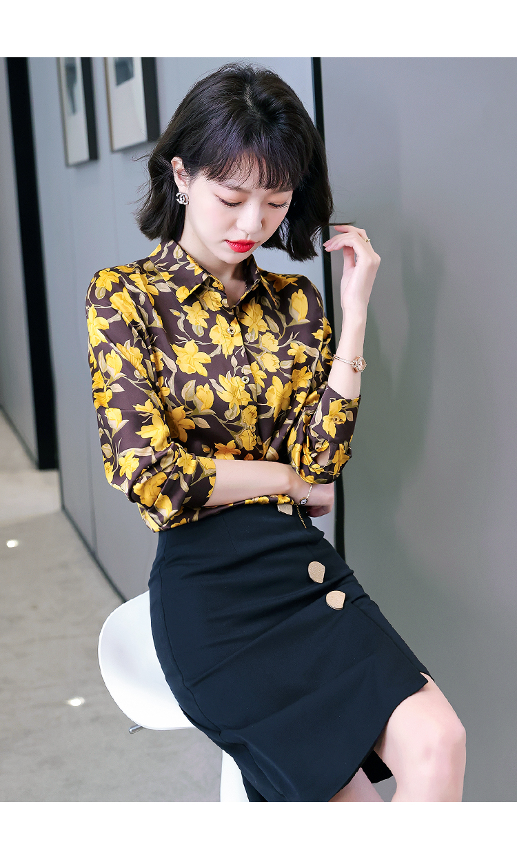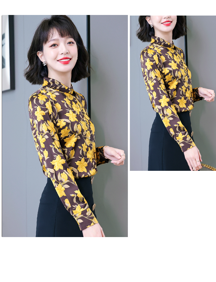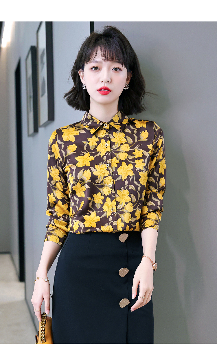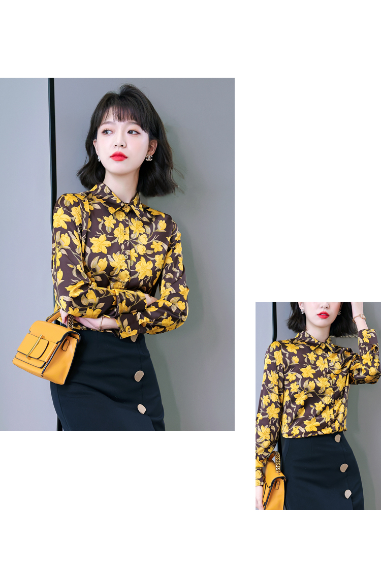 复古范时尚印花雪纺衫 2022春夏韩国缎面醋酸长袖单排扣衬衫女 NSM3169