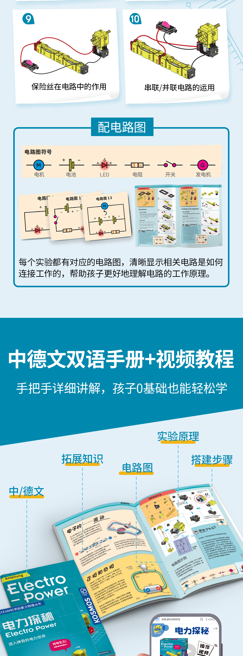 KOSMOS科乐多 《电力探秘》 实验玩具 适合8岁+ 图文视频双教程 实操性科普 K620707