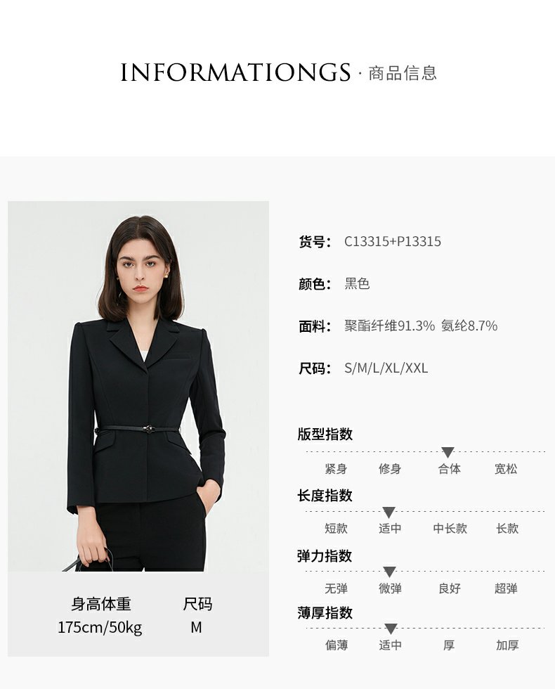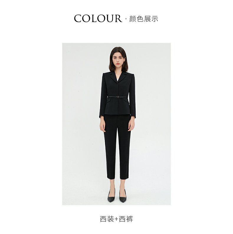 IWY/高端黑色西装套装女新款气质商务公务员面试正装售楼部工作服C13315+P13315