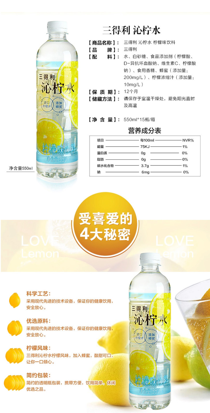 三得利沁柠水550ml