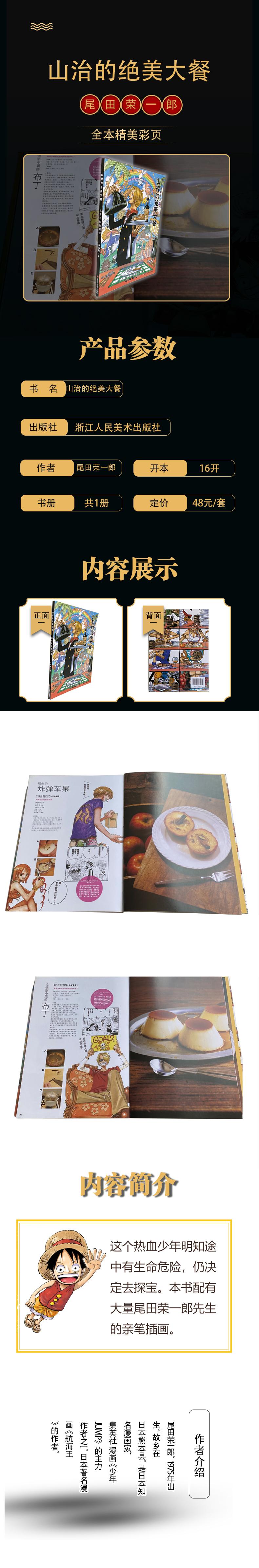 尾田荣一郎著的《山智的绝美大餐(海上一流料理人)》独家披露了山智的私房秘制料理,通过专业料理人之手详尽地展现出来,让每个OP粉能轻易地学会烹制好吃易做、美味无比的OP大餐!来吧!加入路飞一伙,一起感受惊险美好的海上之旅吧!