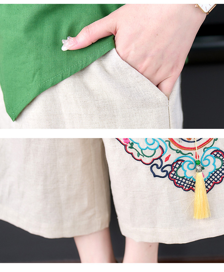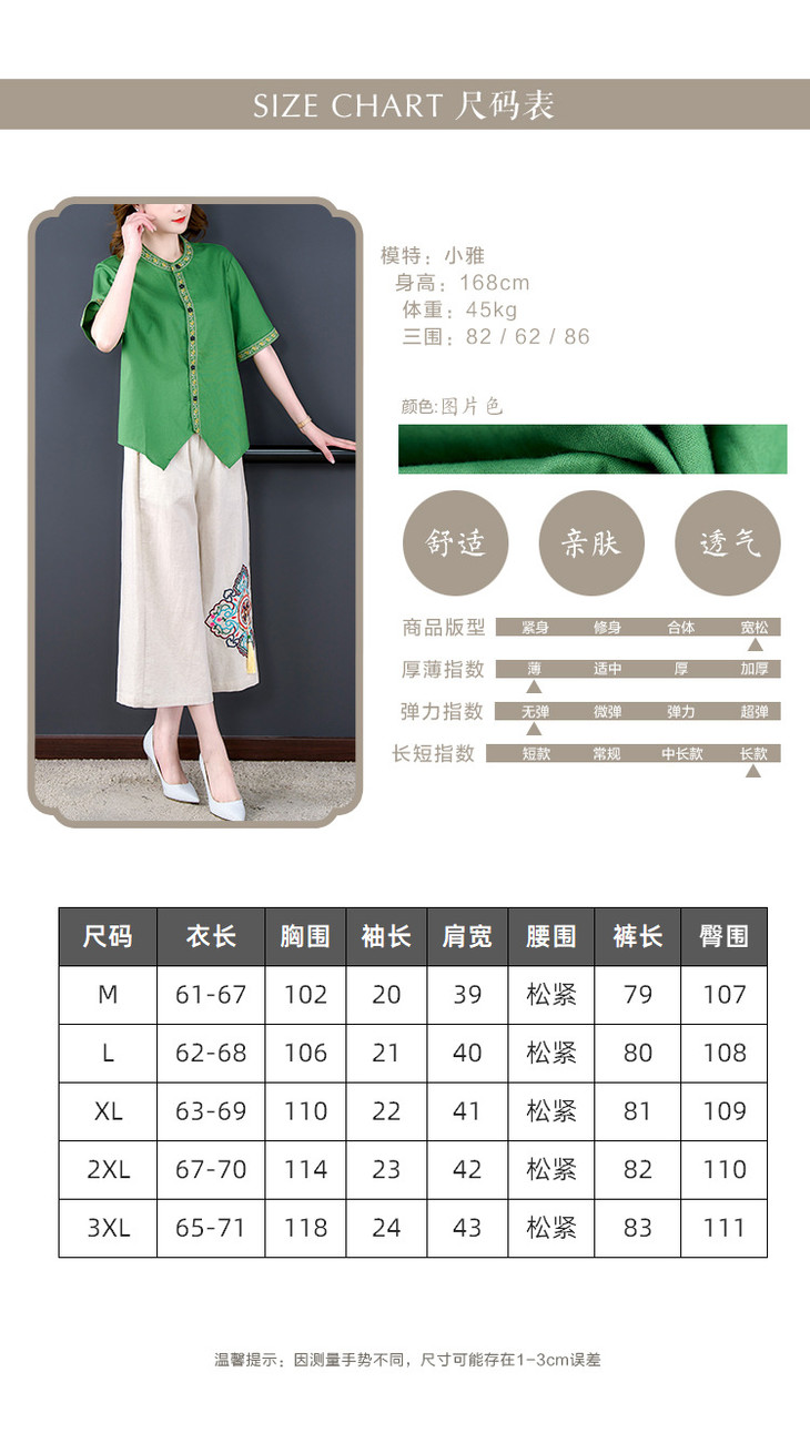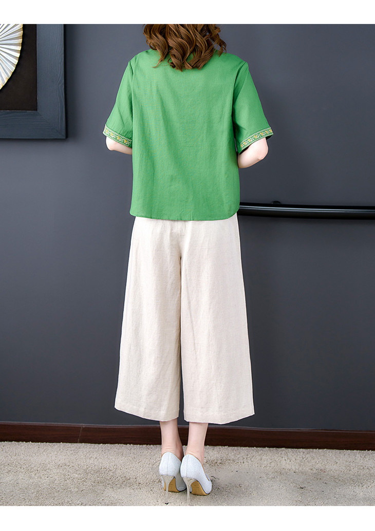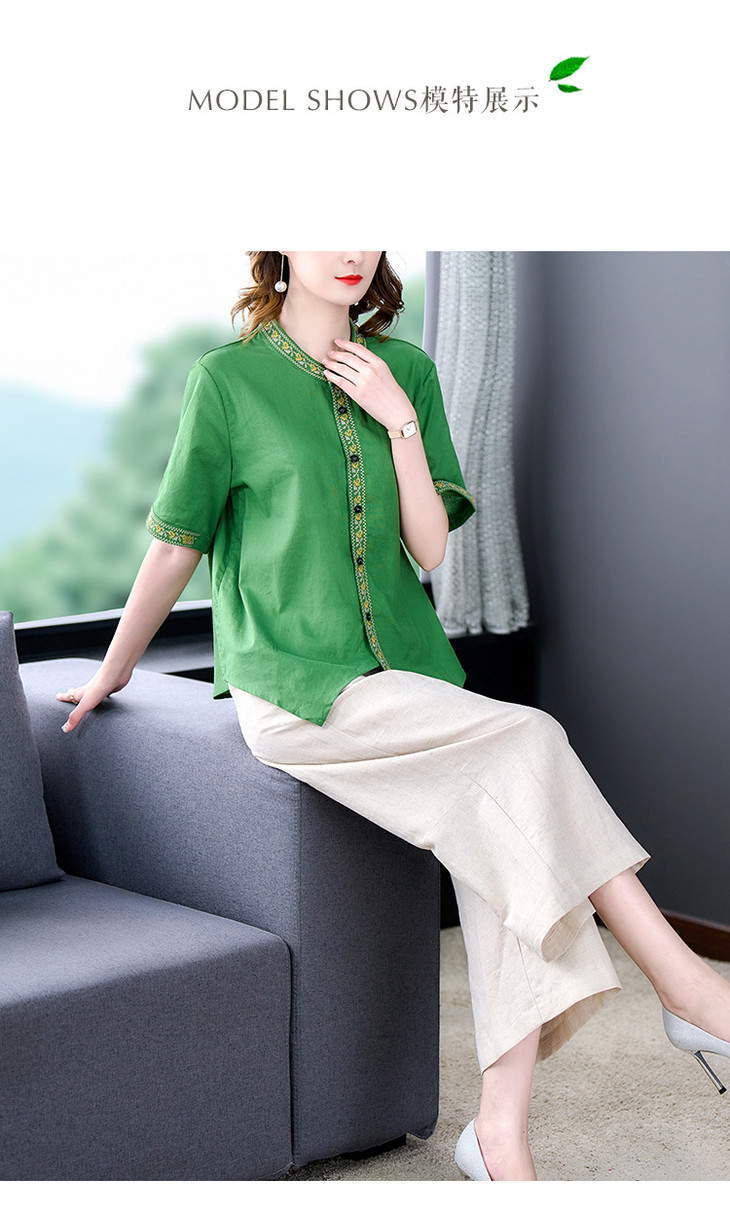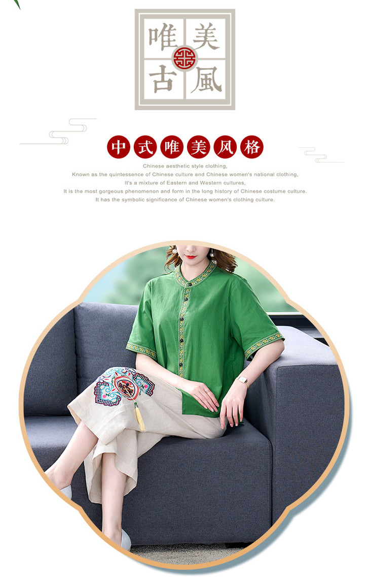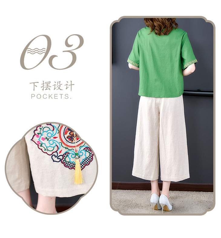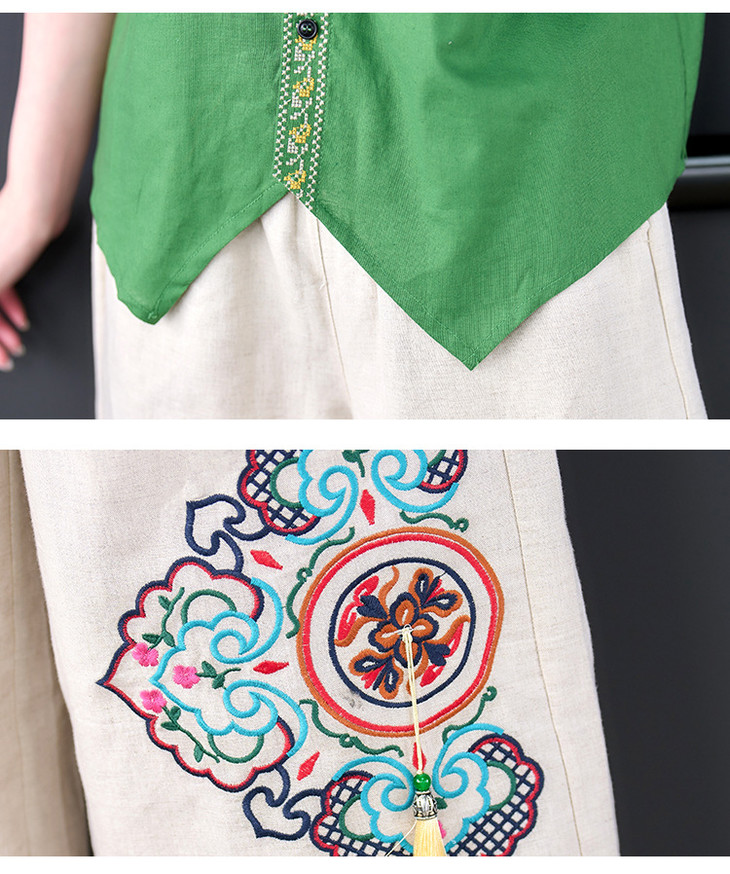 民族风复古显瘦刺绣衬衫阔腿裤棉麻套装AHM-yslg8671