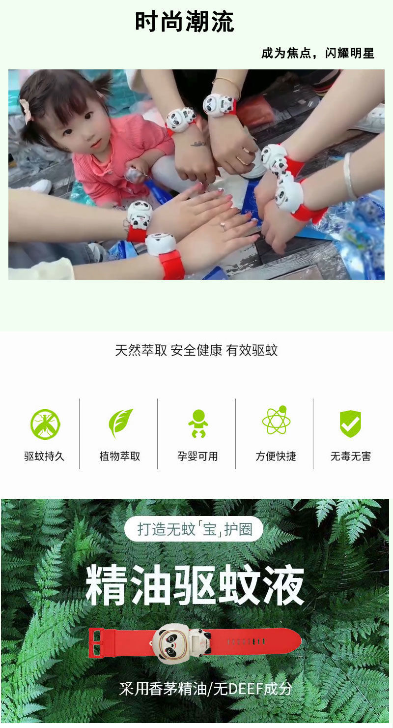 抖音爆款可爱2022礼品驱蚊手环熊猫户外解压礼物大人儿童玩具手表国庆出游