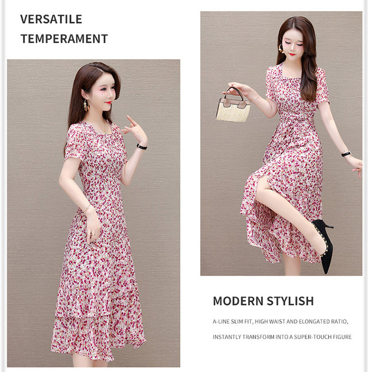 红花气质碎花拼结不对称A字裙QYM-LRX-RC1061-1-Y