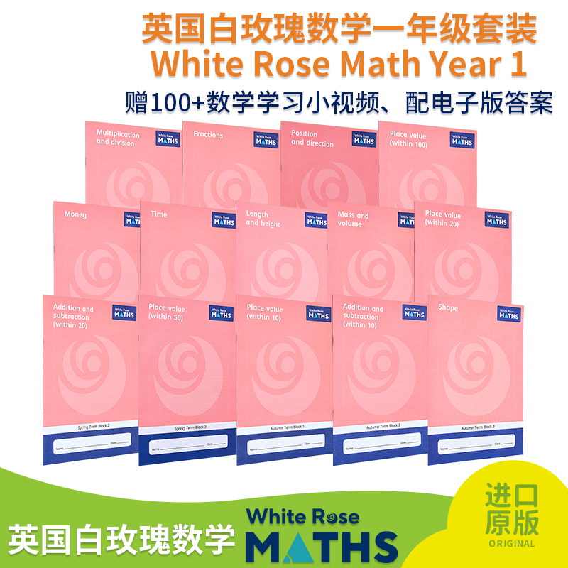 预售 【中商原版】White Rose Math Year 1 英国白玫瑰数学教材练习册 小学一年级学年套装14册 秋3册+春5册+夏6册 加减乘除法运算