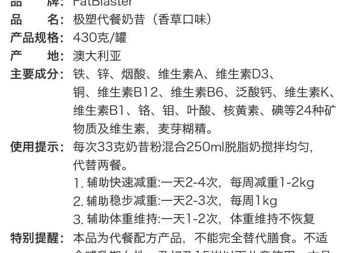 【保税仓】澳洲Fatblaster代餐瘦体奶昔香草味 430g 商品图0
