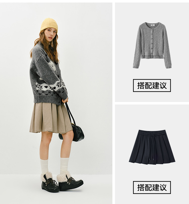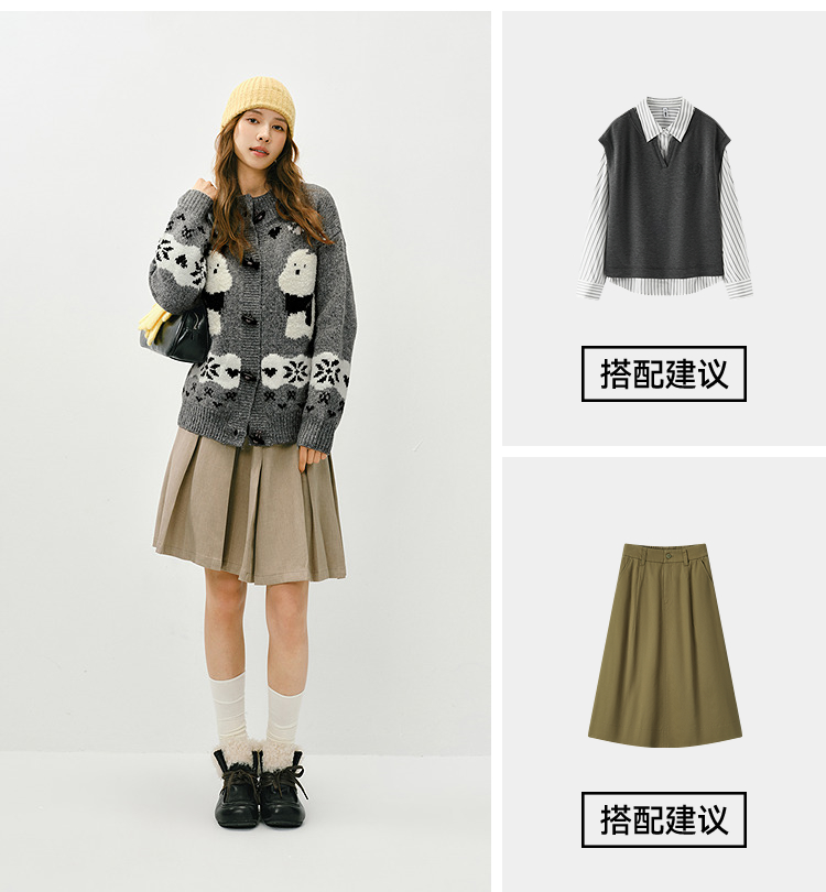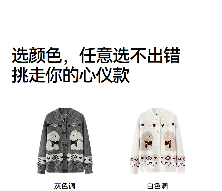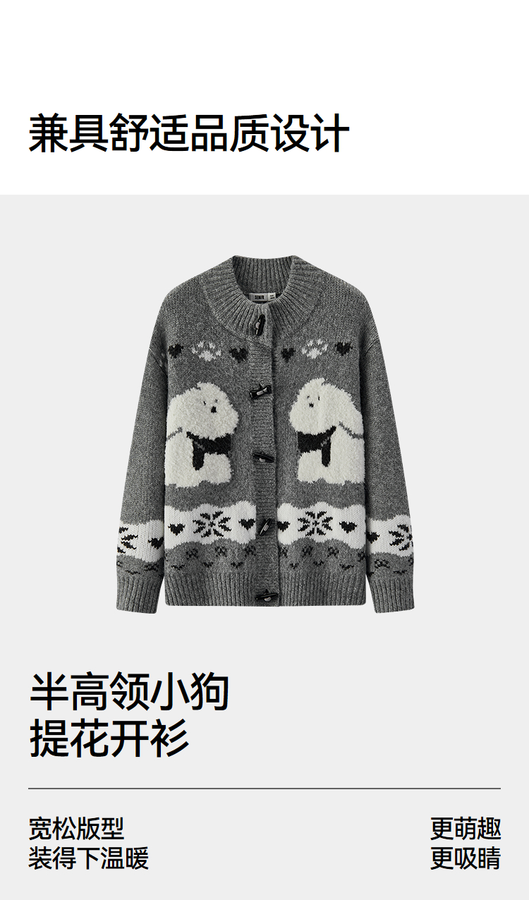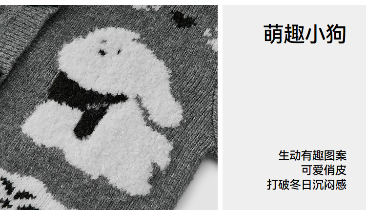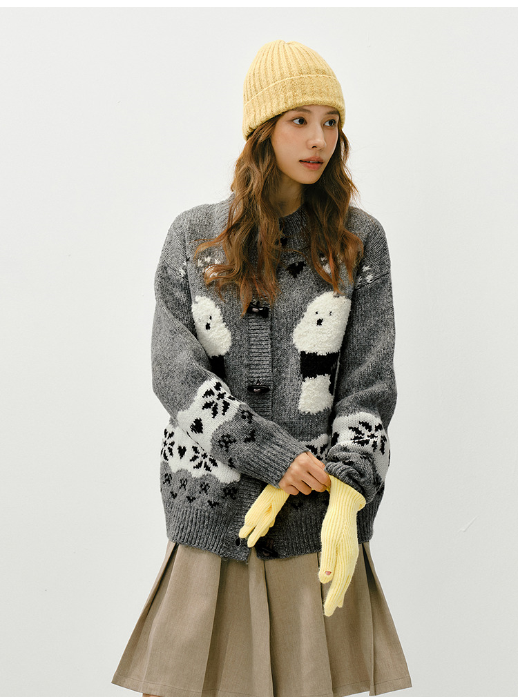 森马针织开衫女冬半高领小狗提花牛角扣毛衫宽松2025新款可爱上衣