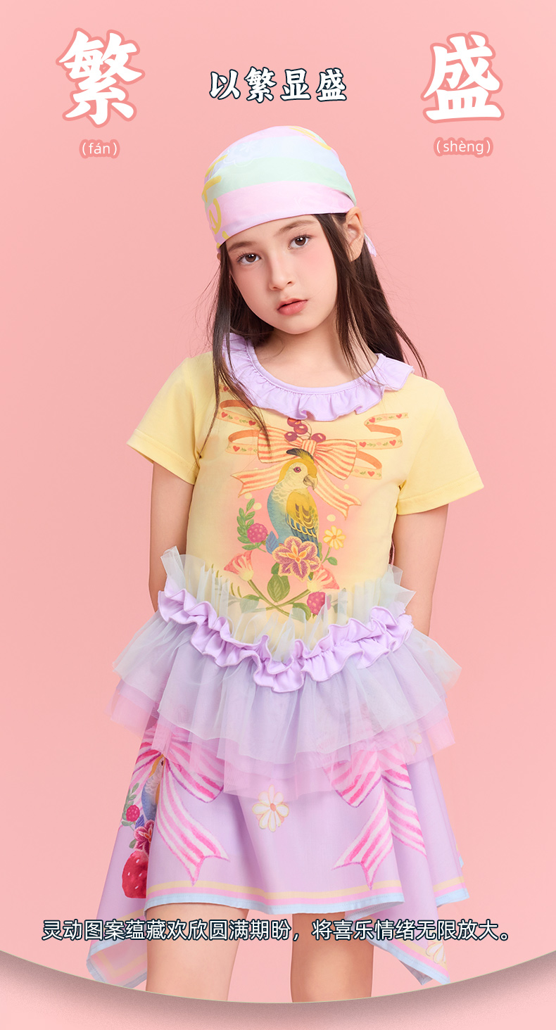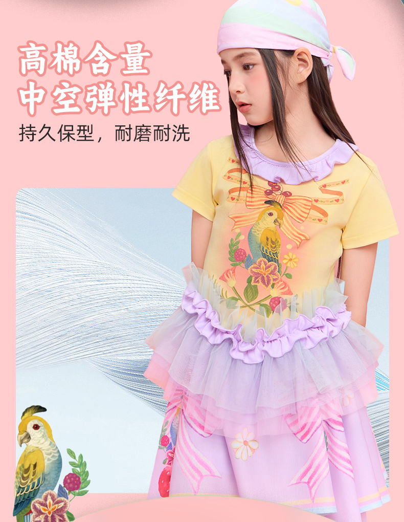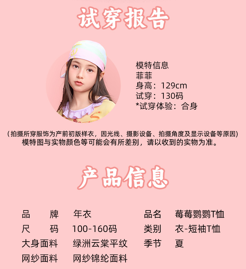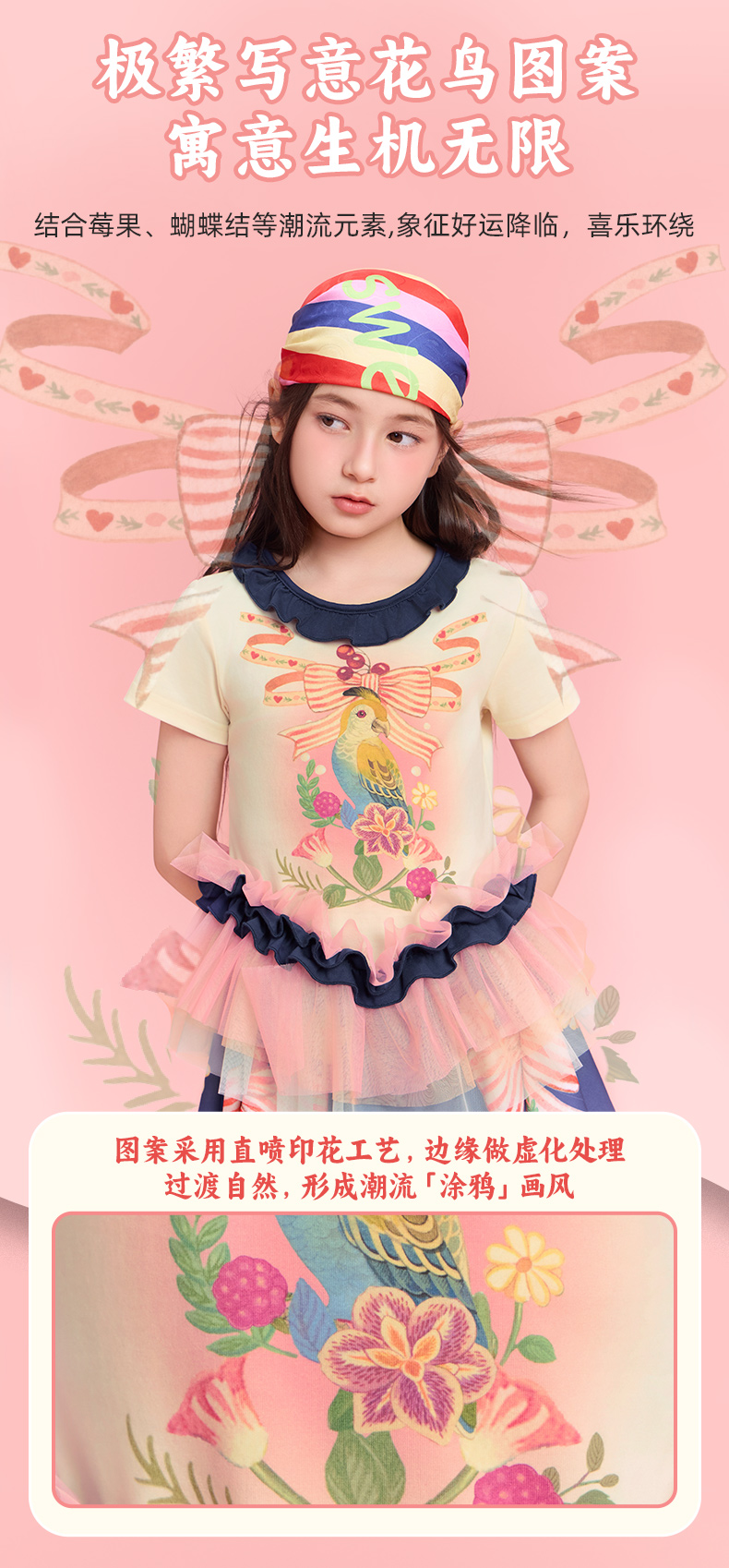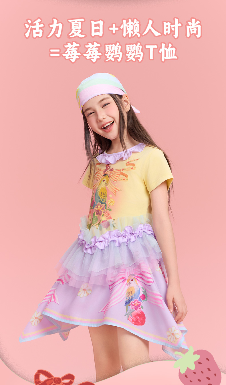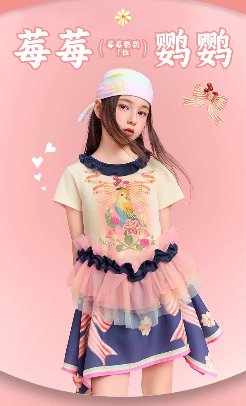 年衣儿童短袖T恤女童2025年夏季新款可爱甜美莓莓鹦鹦T恤