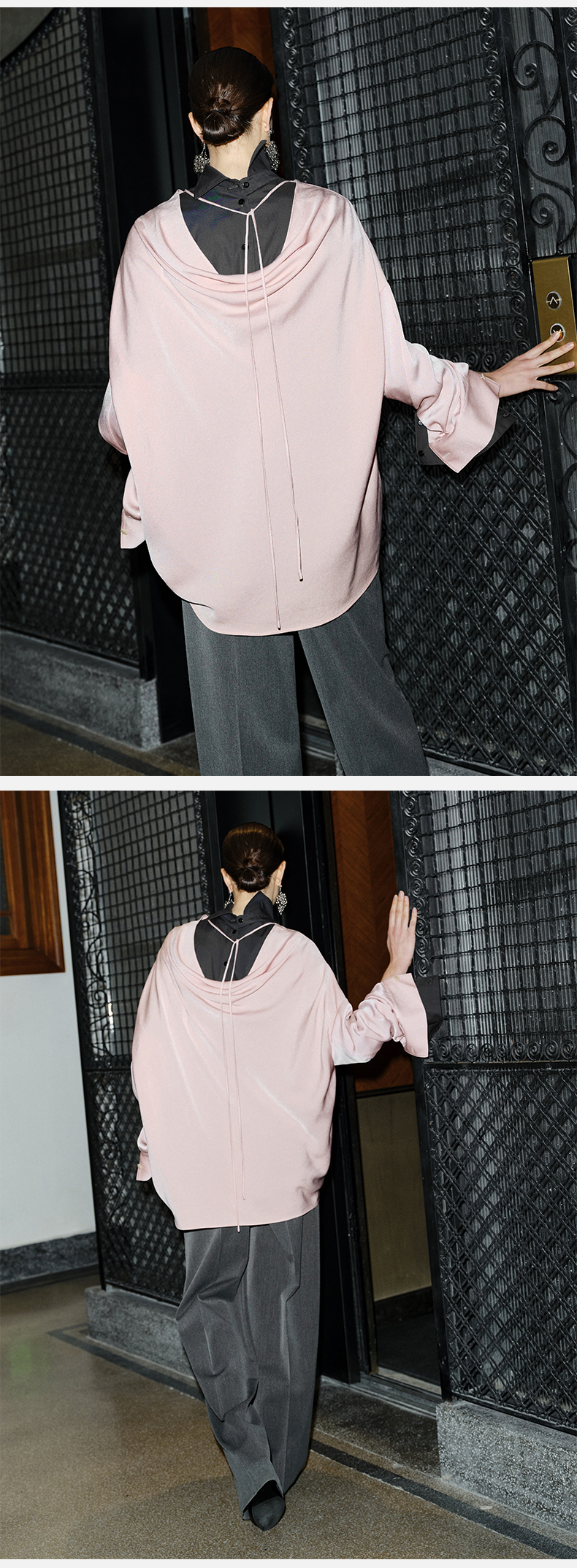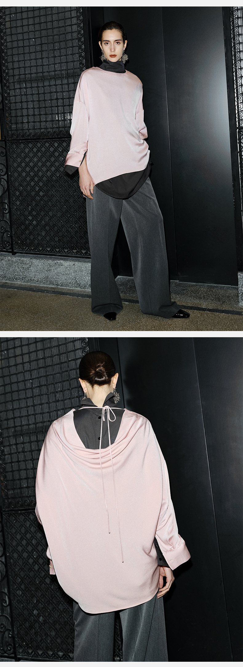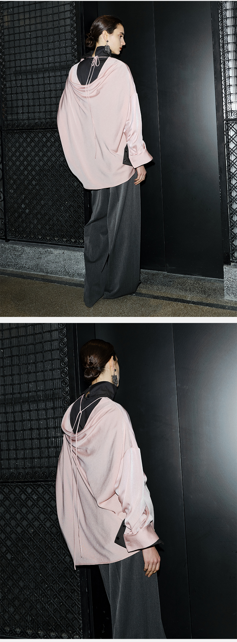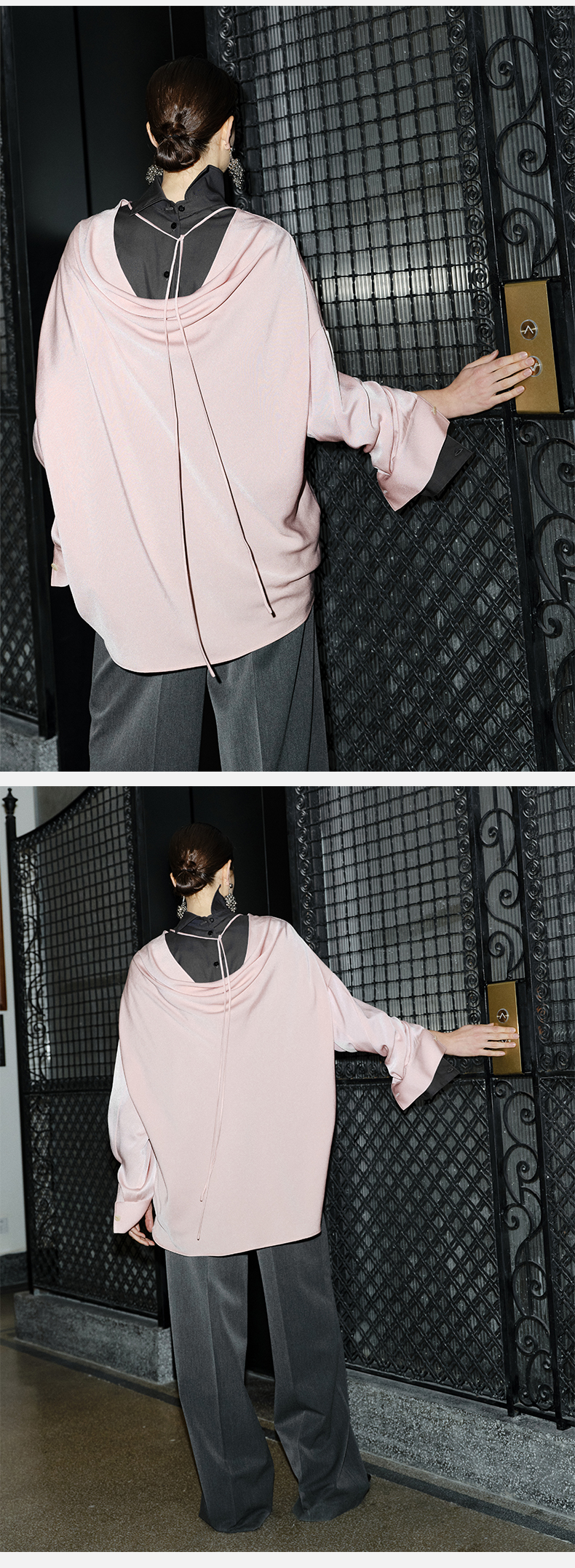HIDEMI 节日系列粉色醋酸极简设计感后背绑带式廓形上衣