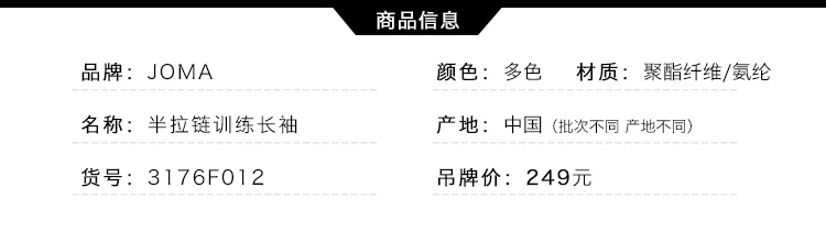 小李子:专柜正品JOMA/荷马秋冬半拉链长袖运动训练服3176F012