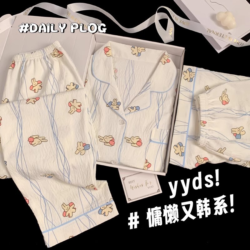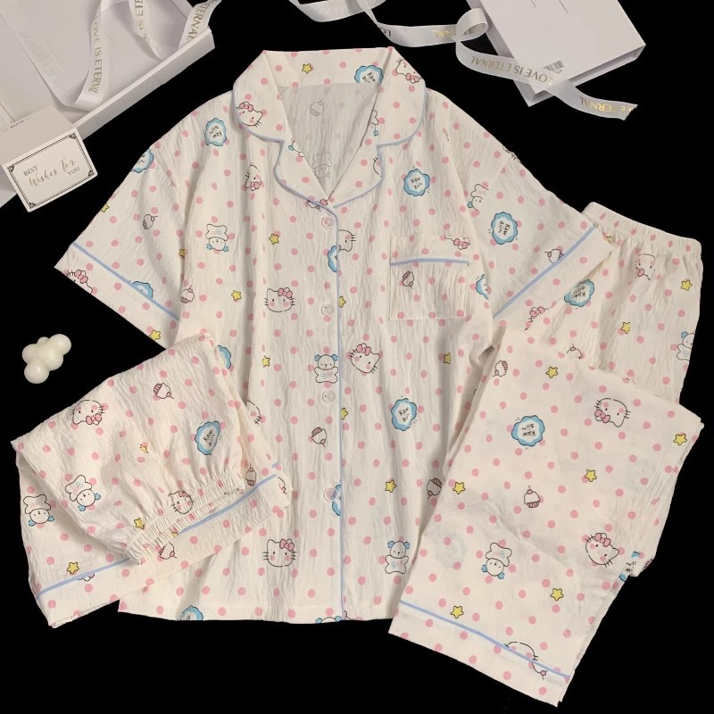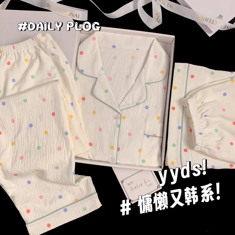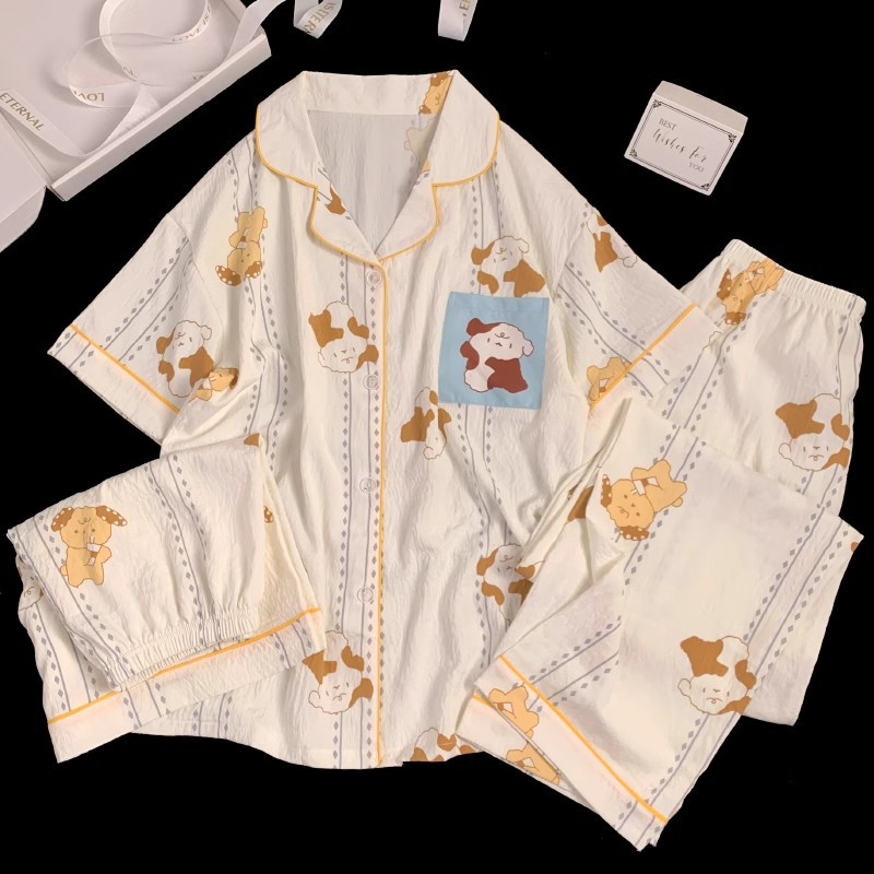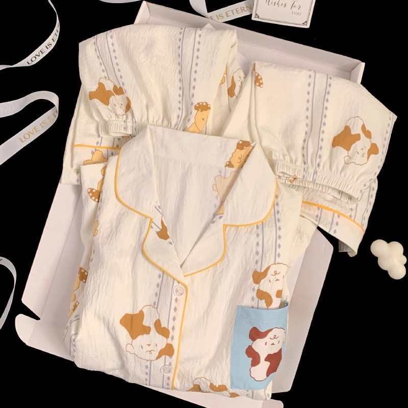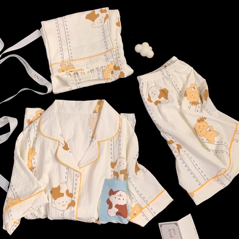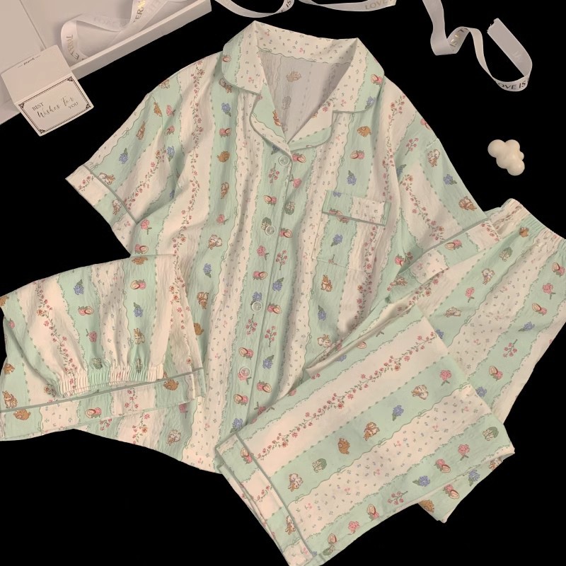 【显瘦不勒肉!亲肤不扎】奶乎乎睡衣女春夏季云朵纯棉绸棉纱短袖可爱大码宽松家居服三件套。xb