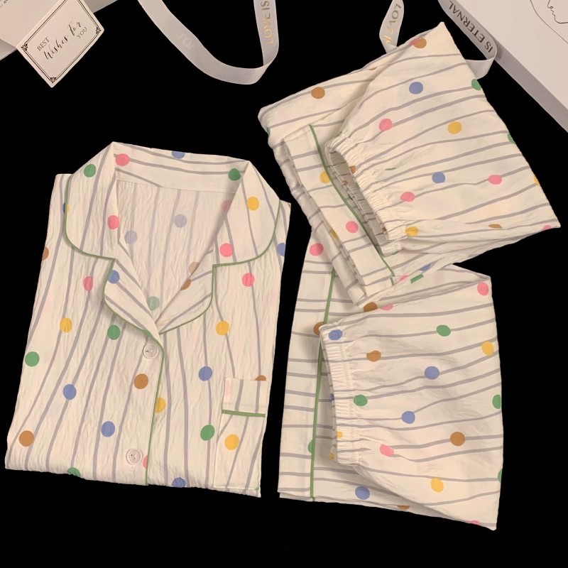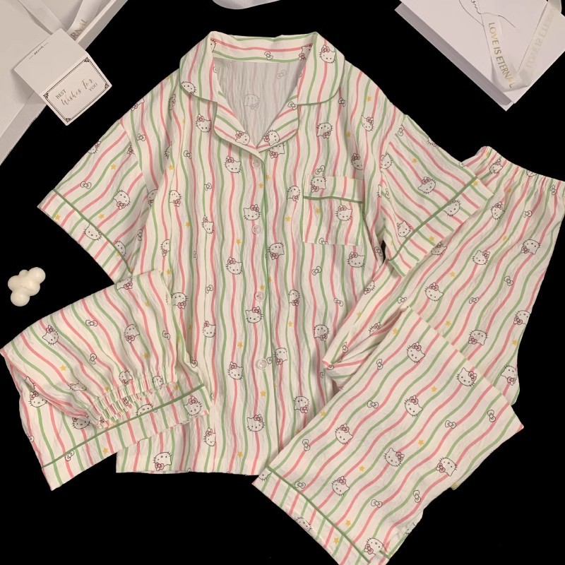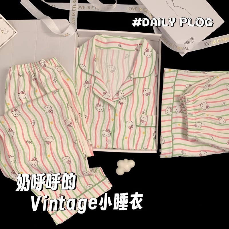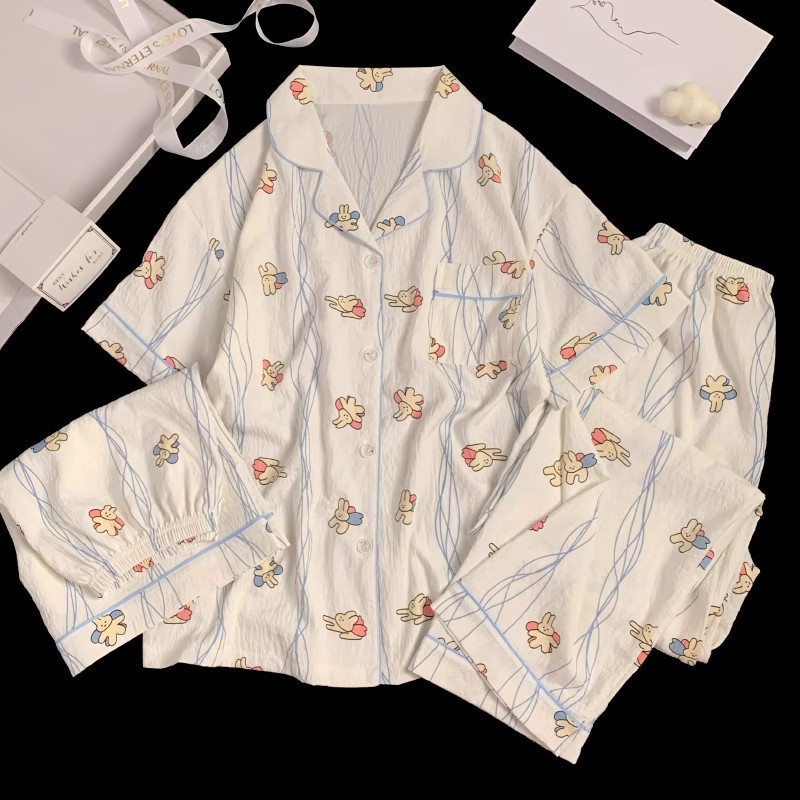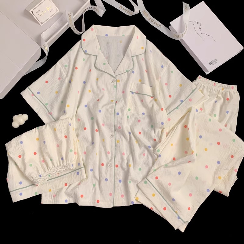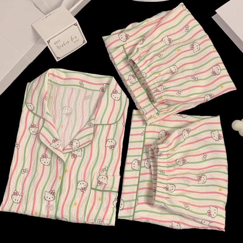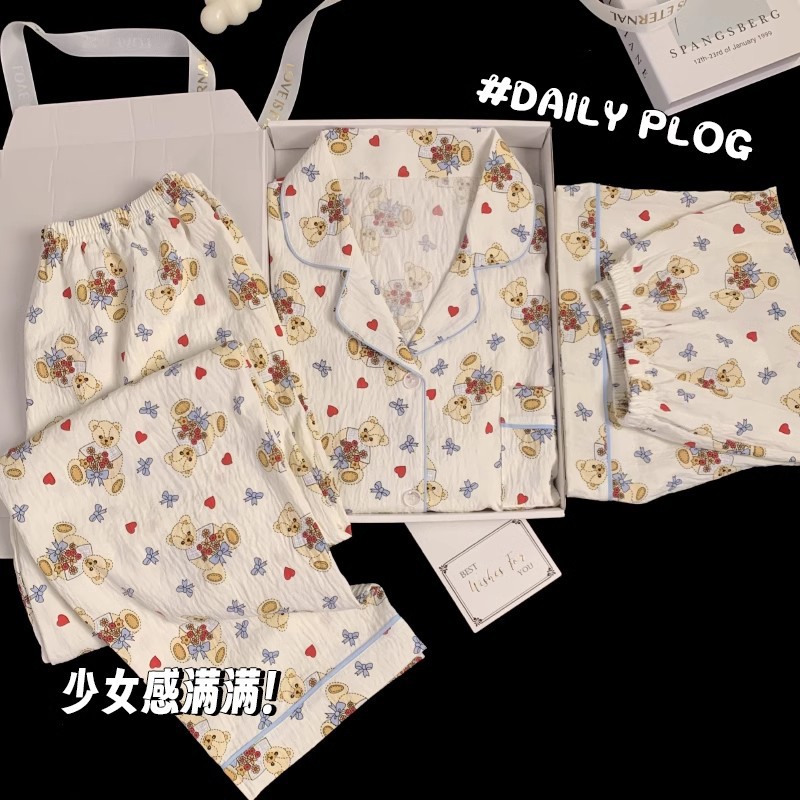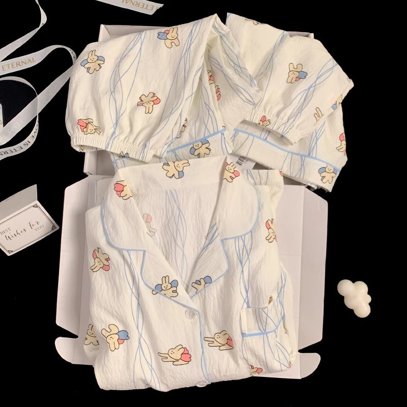 【显瘦不勒肉!亲肤不扎】奶乎乎睡衣女春夏季云朵纯棉绸棉纱短袖可爱大码宽松家居服三件套。xb