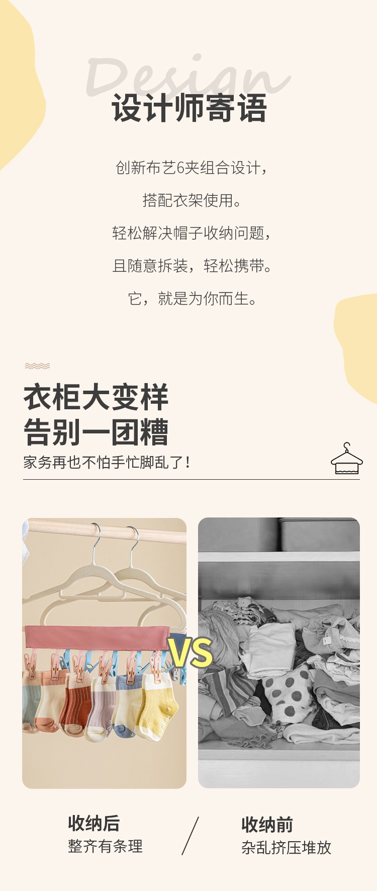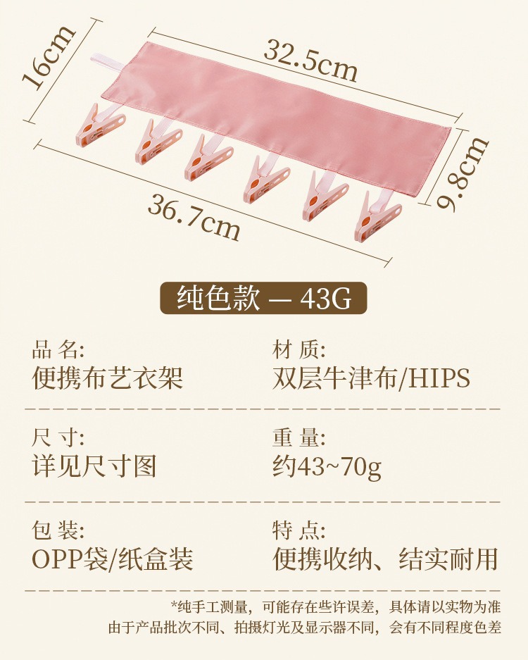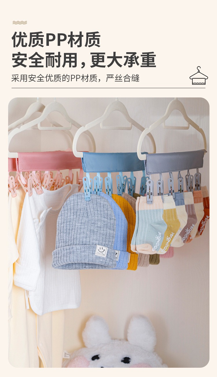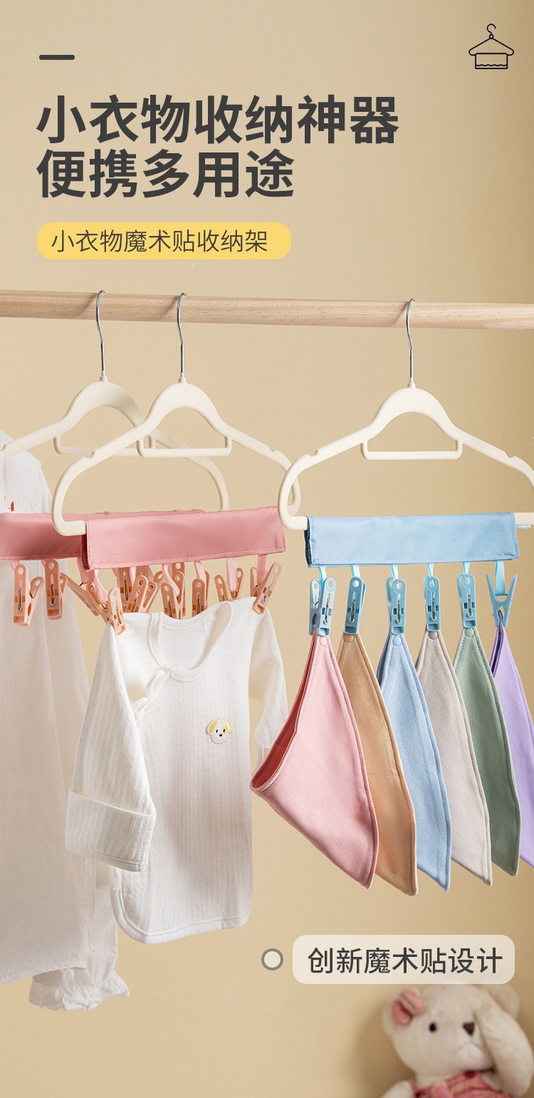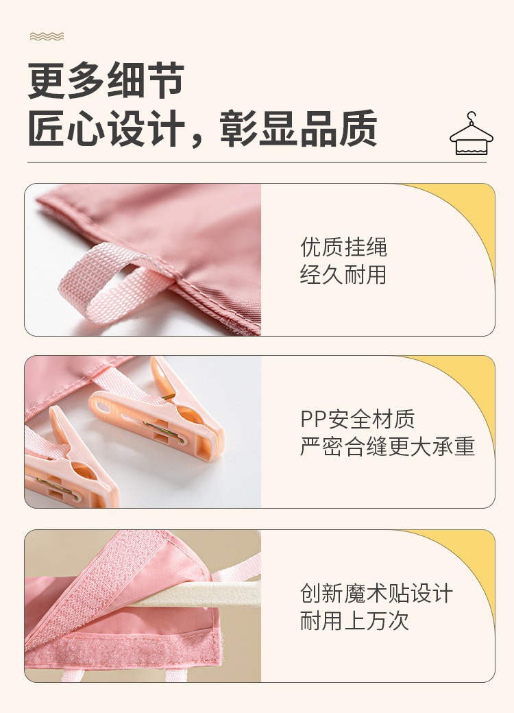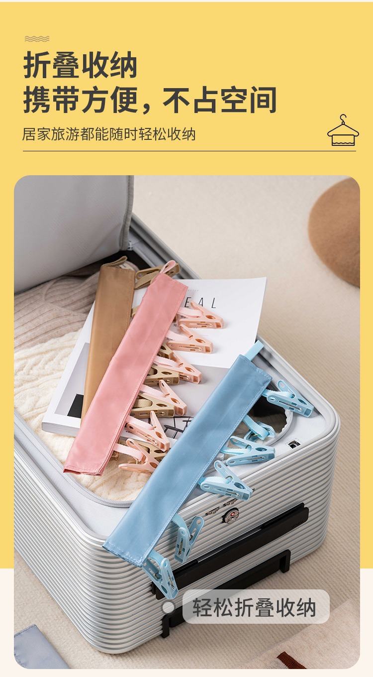 9.9限时抢!【小衣物收纳神器,便携多用途!】浴室布艺晒衣夹 可折叠出差旅游 晾晒内衣袜子小夹子 旅行晾衣架-QB
