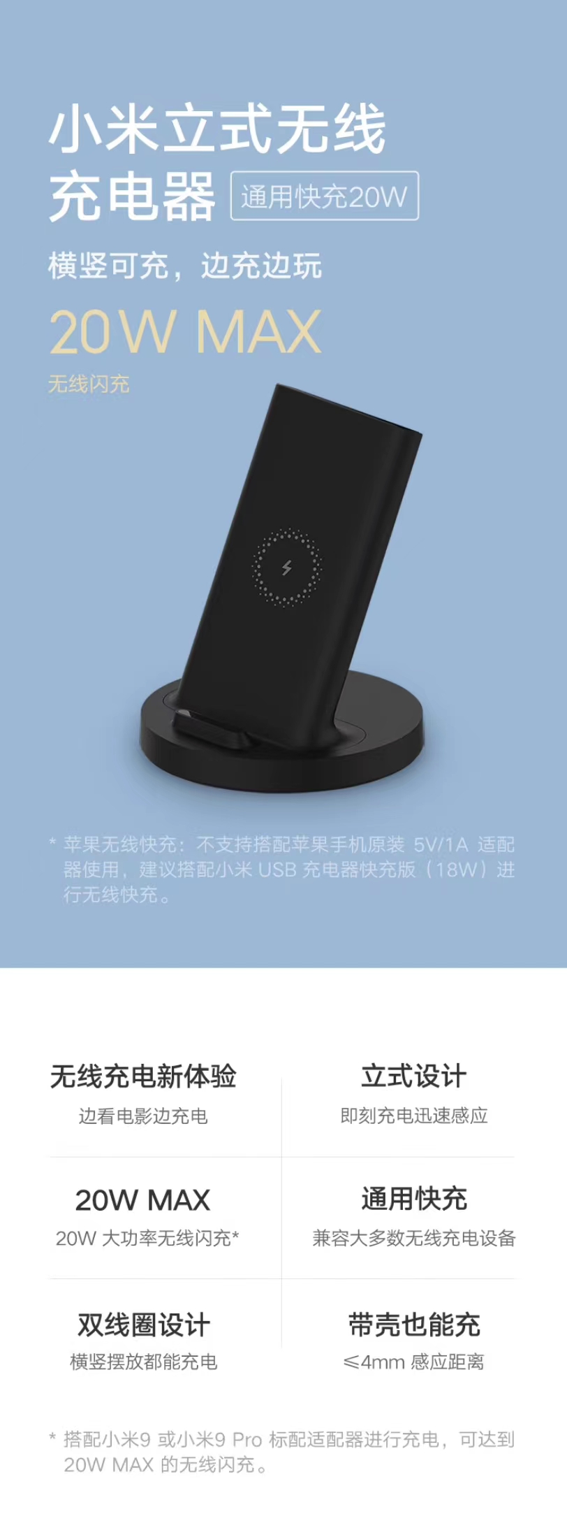 小米立式无线充电器(通用快充20W)