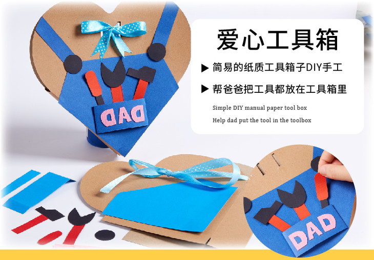 父亲节手工diy贺卡爱心工具箱幼儿园儿童自制粘贴自制礼品材料包