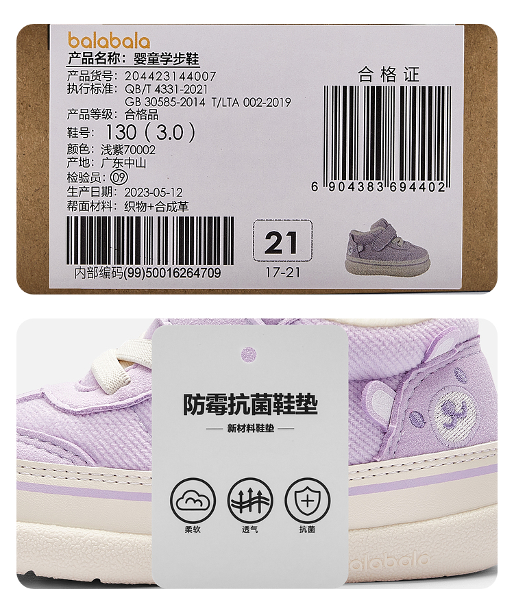 巴拉巴拉宝宝学步鞋加绒保暖婴儿鞋防滑女宝鞋子秋冬可爱卡通童鞋
