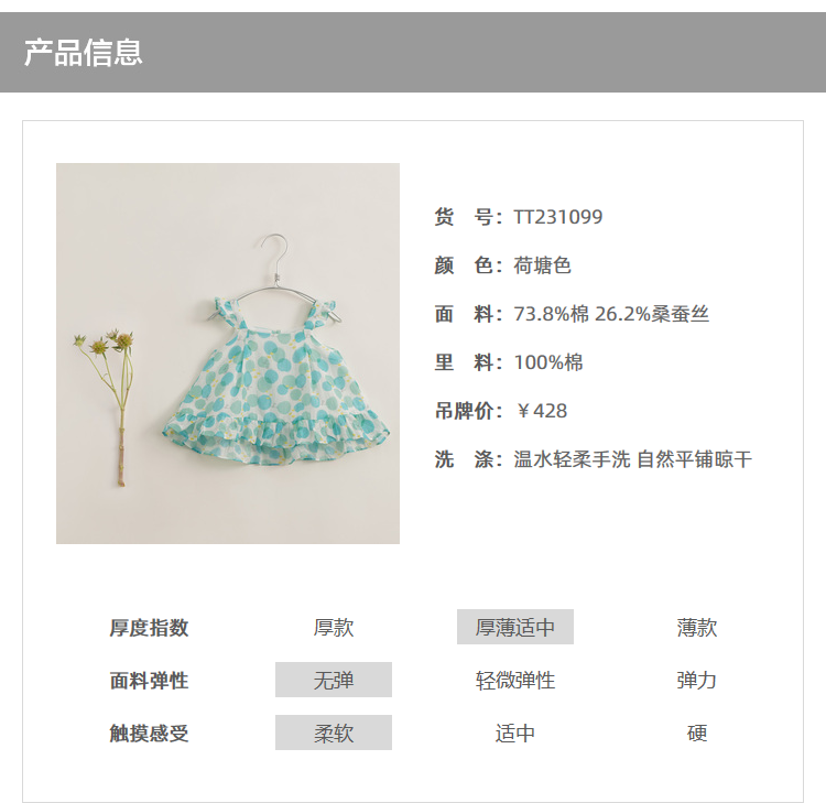 【马克珍妮 芦芙】新款夏装 女童清新荷叶棉真丝背心231099