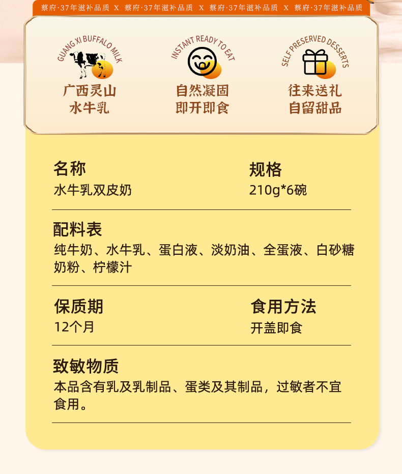 蔡府水牛奶双皮奶210g*6碗