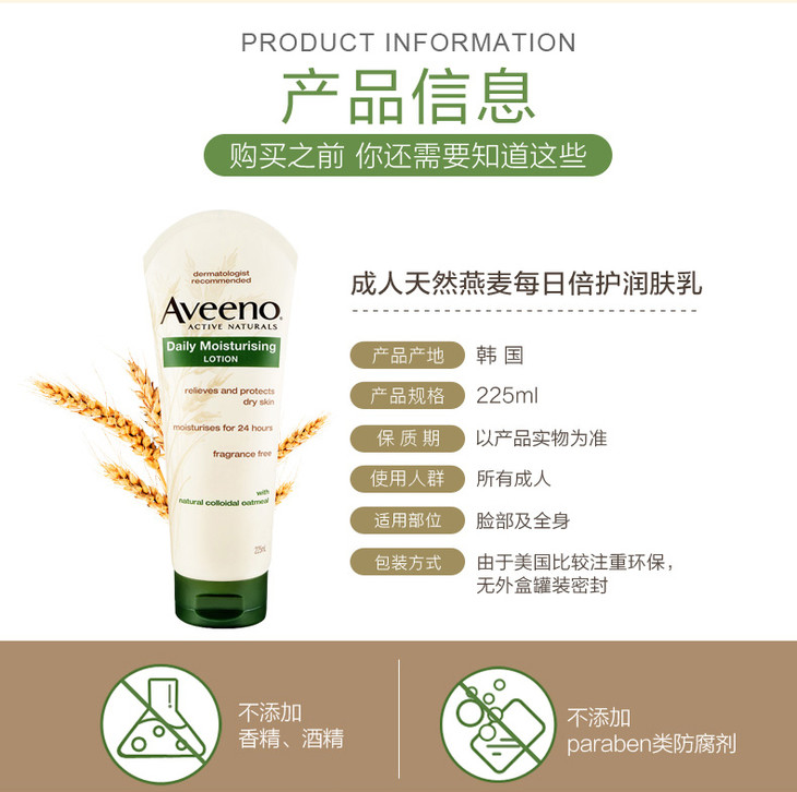 【一般贸易】艾惟诺AVEENO燕麦每日倍护成人润肤乳身体乳225ml